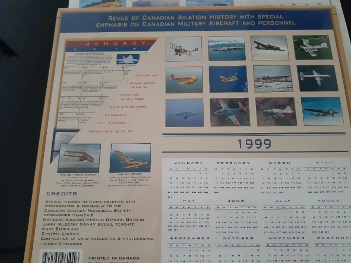 Salute to Canadian Military Aviation 1998 calendar. Features Canadian heroes and historical aircraft. Printed in Canada.