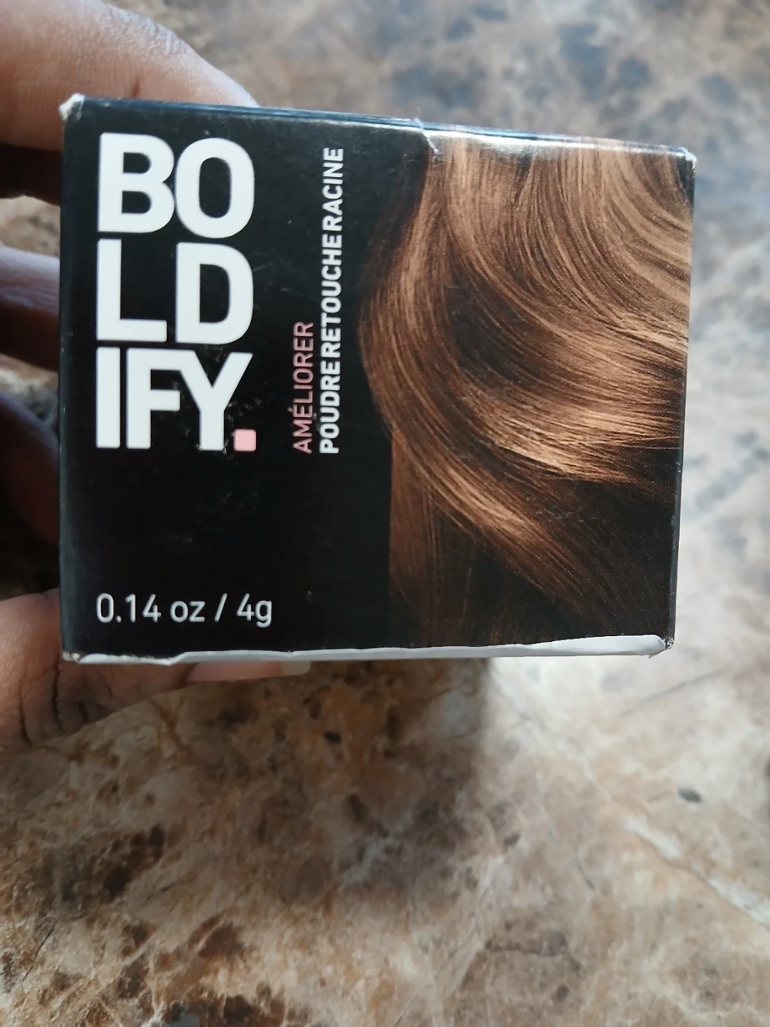 This is a Boldify root touch-up powder for hair. It comes in a 0.14 oz / 4g size. This powder helps to blend your roots between colourings. Price is firm plz. Pick up midland and Danforth or 401 bay street or stc mall