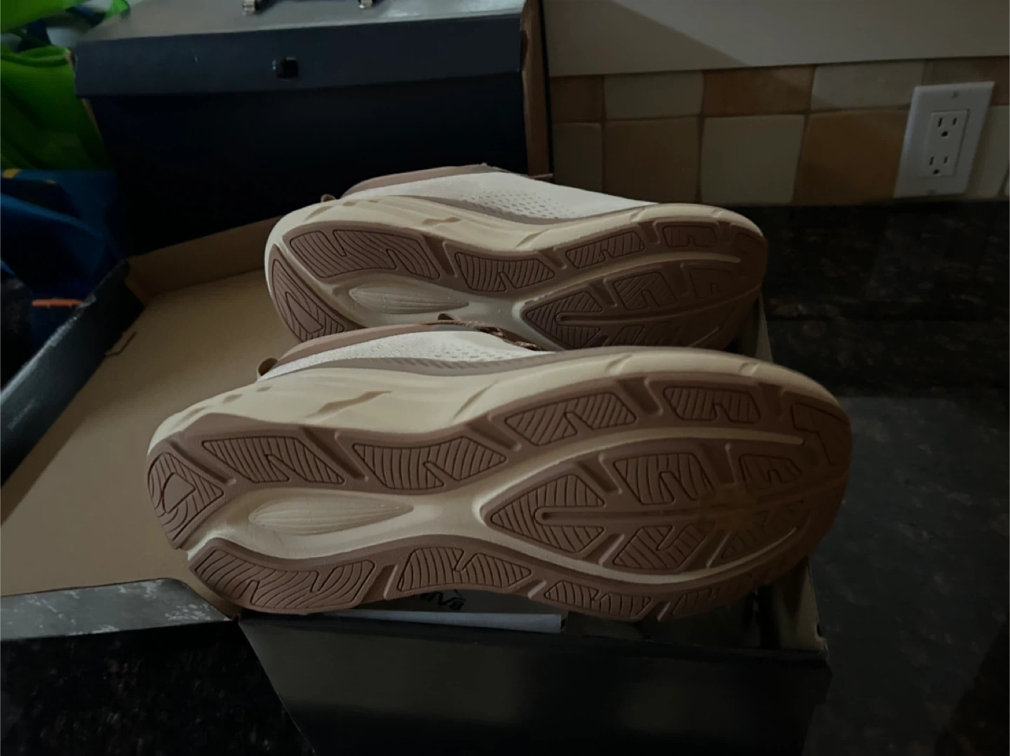 New!!These NORTIV8 running shoes are in a beige and khaki colourway. The shoes are US size 10, EUR size 41.5, UK size 8, and JPN size 270. They come with their original box.