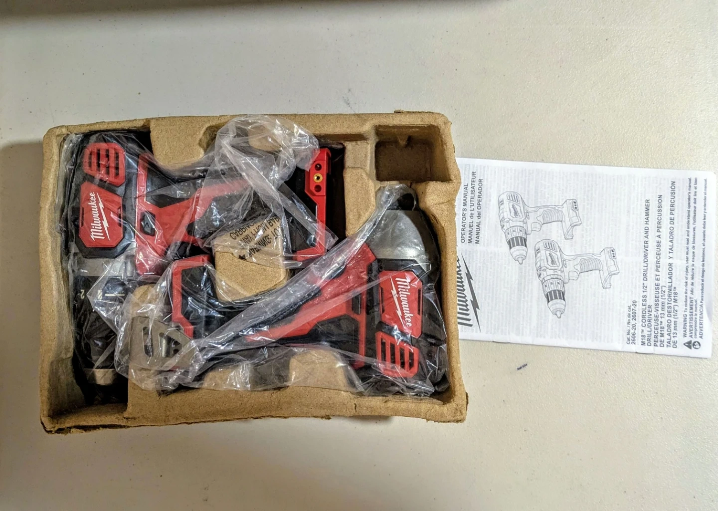 This Milwaukee M18 combo kit includes a cordless drill and an impact driver. It also comes with a charger and two XC 3.0 batteries. This set's great for various DIY and professional tasks!