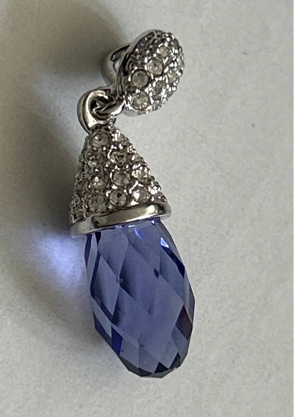 Pendant with Blue/Purple Gemstone and Rhinestones