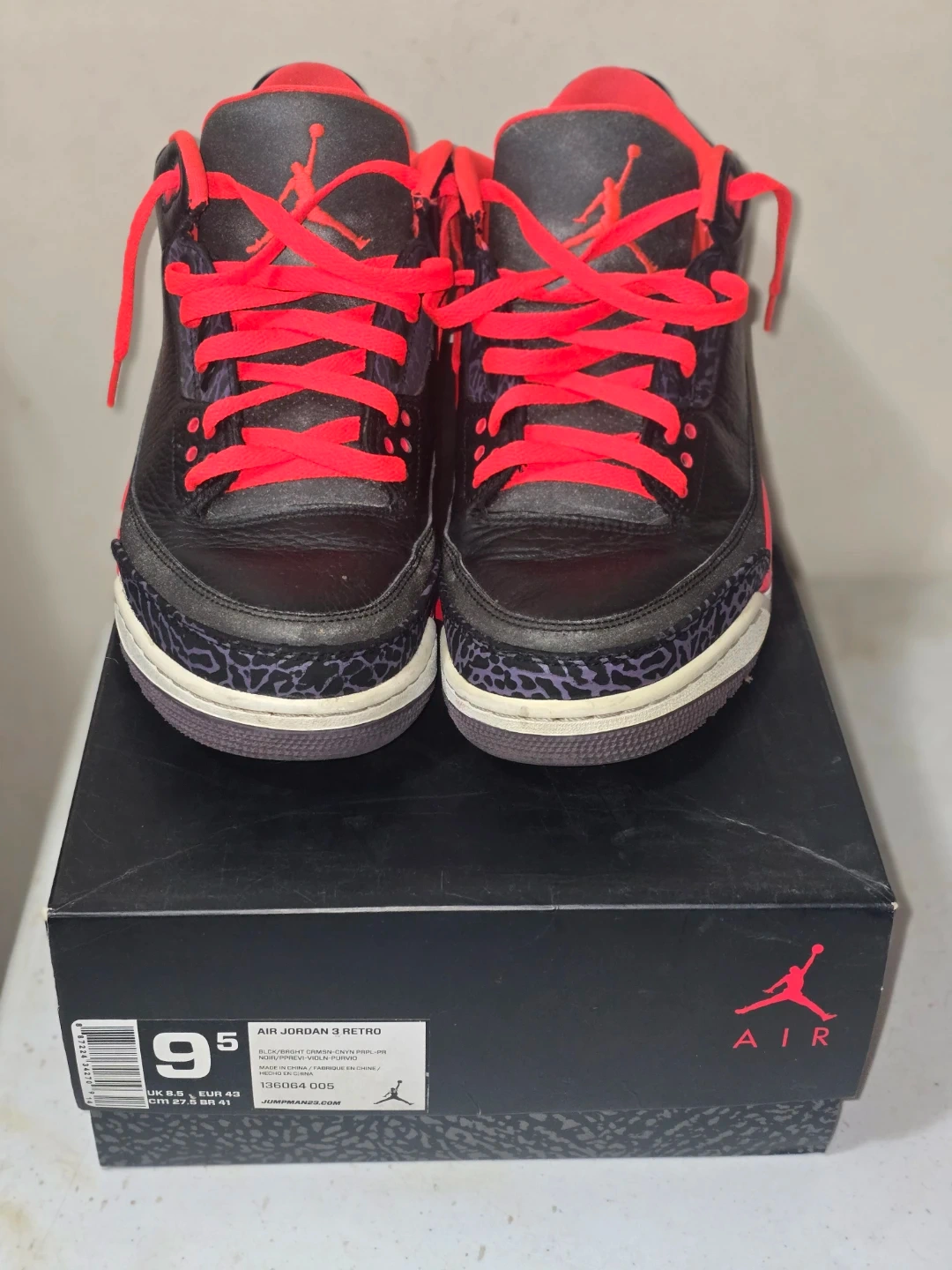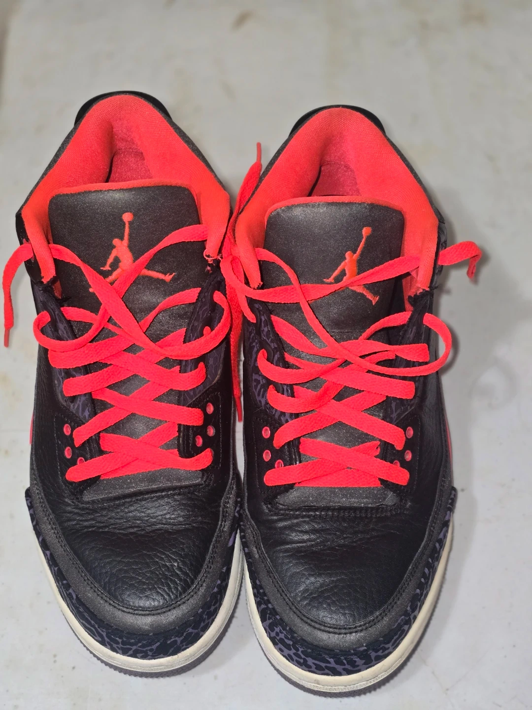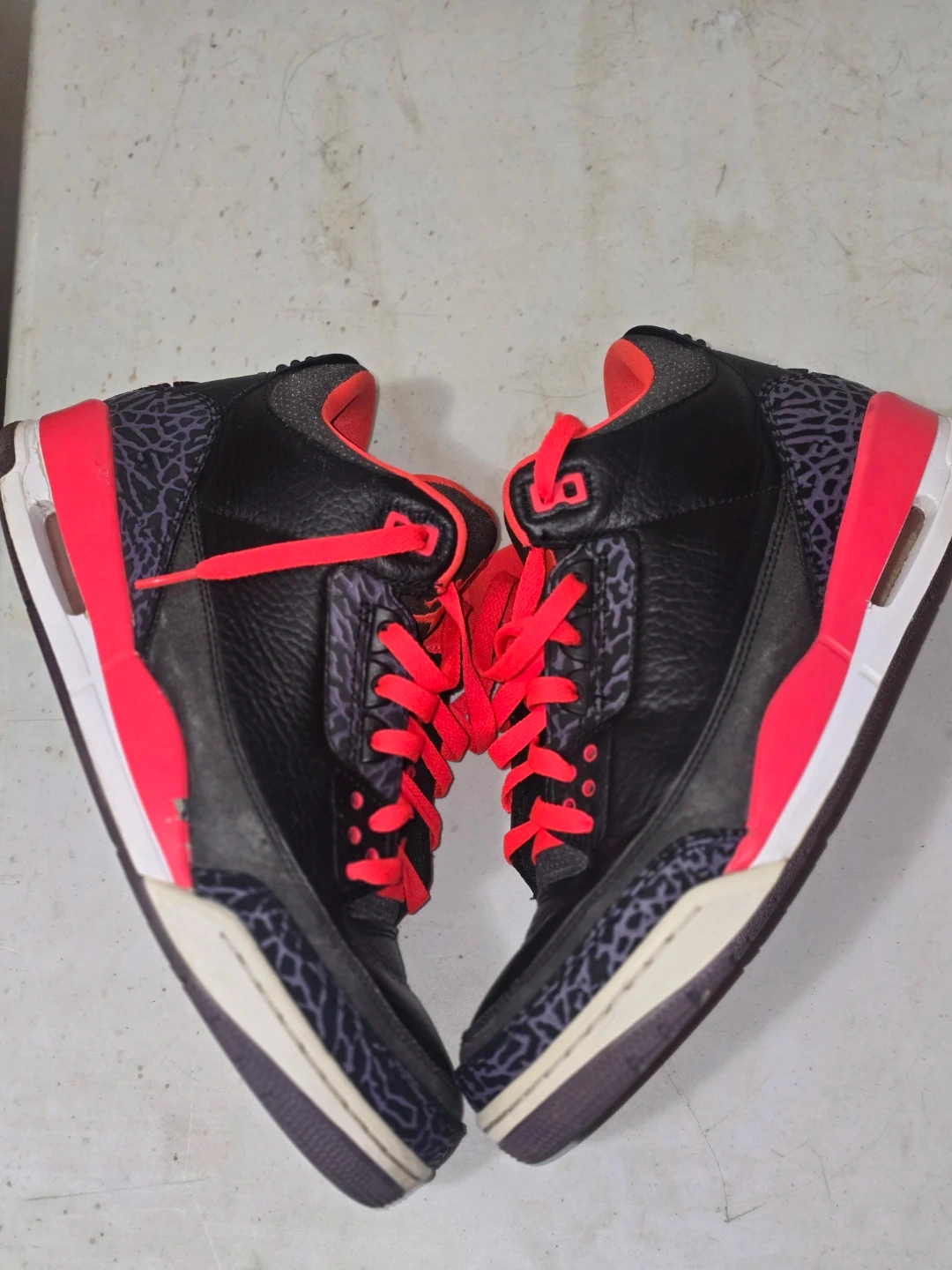 Air Jordan 3 Retro Men's Size 9 Black Crimson Elephant Print