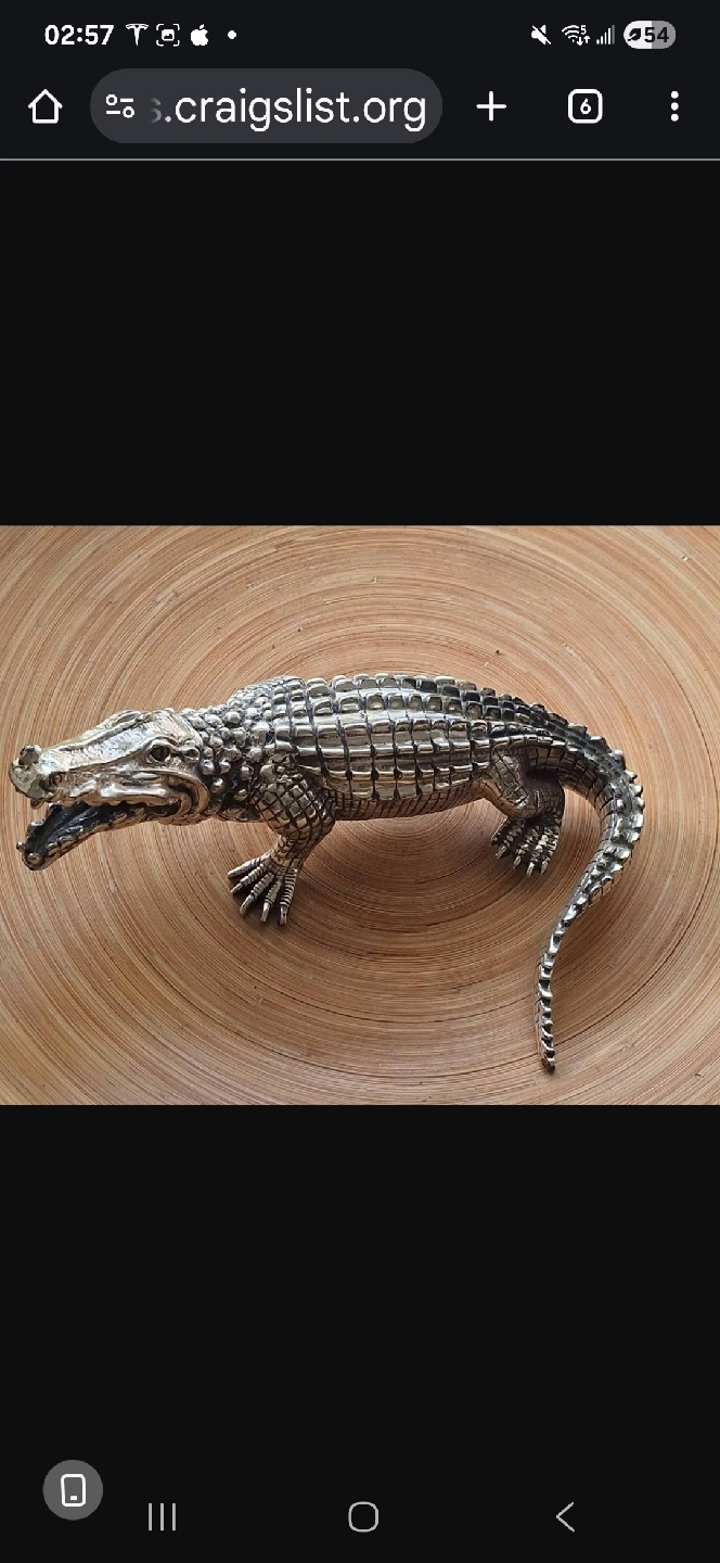 Selling a silver crocodile figurine. It's in good condition and would look great as a decorative piece in your home. Silver alligator for sale for only $550 obo. Please inquire 672 514 6815