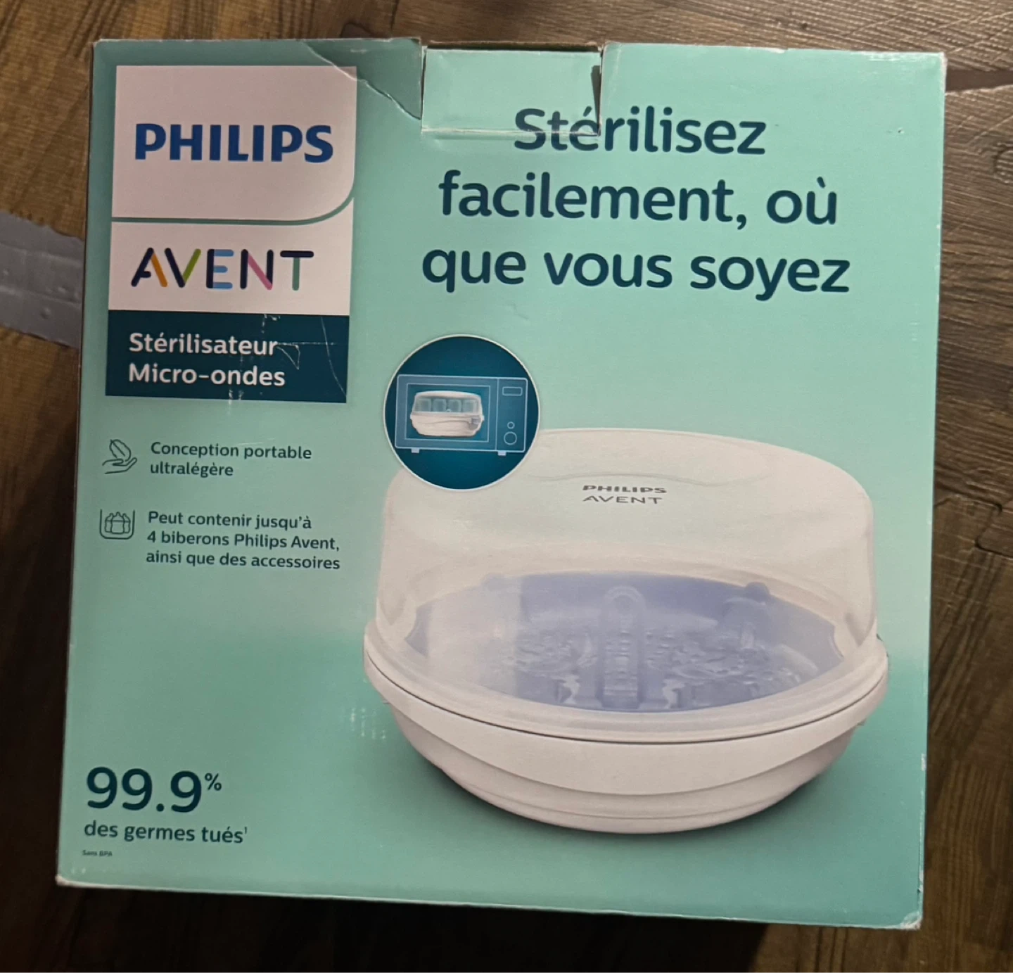 Sterilize bottles easily anywhere with this Philips Avent microwave sterilizer. It's portable and lightweight, holding up to 4 Philips Avent bottles and accessories. Kills 99.9% of germs.