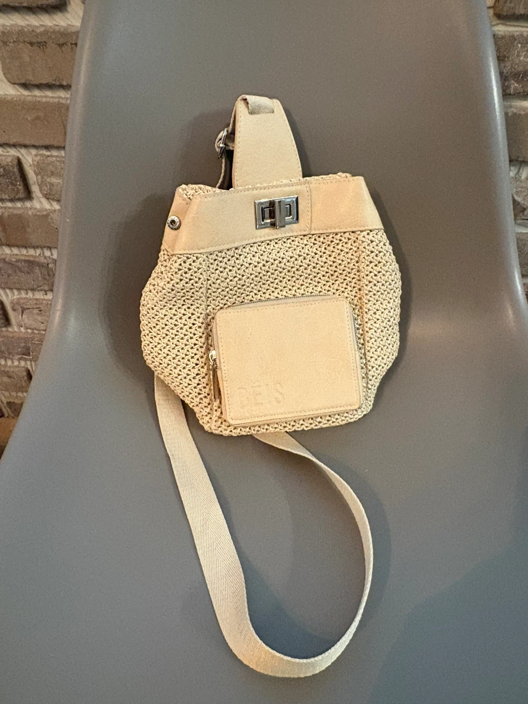 65BÉIS sling bag in a beige woven material! has a front pocket and adjustable strap too. Only been used 2-3 times and in excellent condition! Willing to pick up/drop off in Brampton