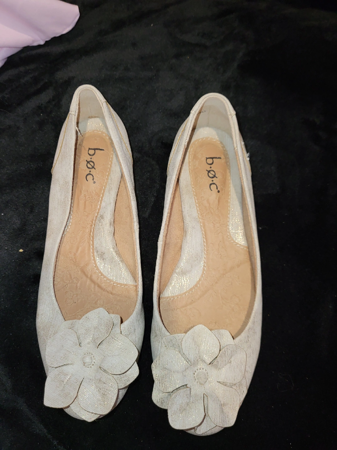 Cute pair of B.O.C. ballet flats in a size 6. They have a flower detail on the toe. Great for adding a touch of charm to any outfit!