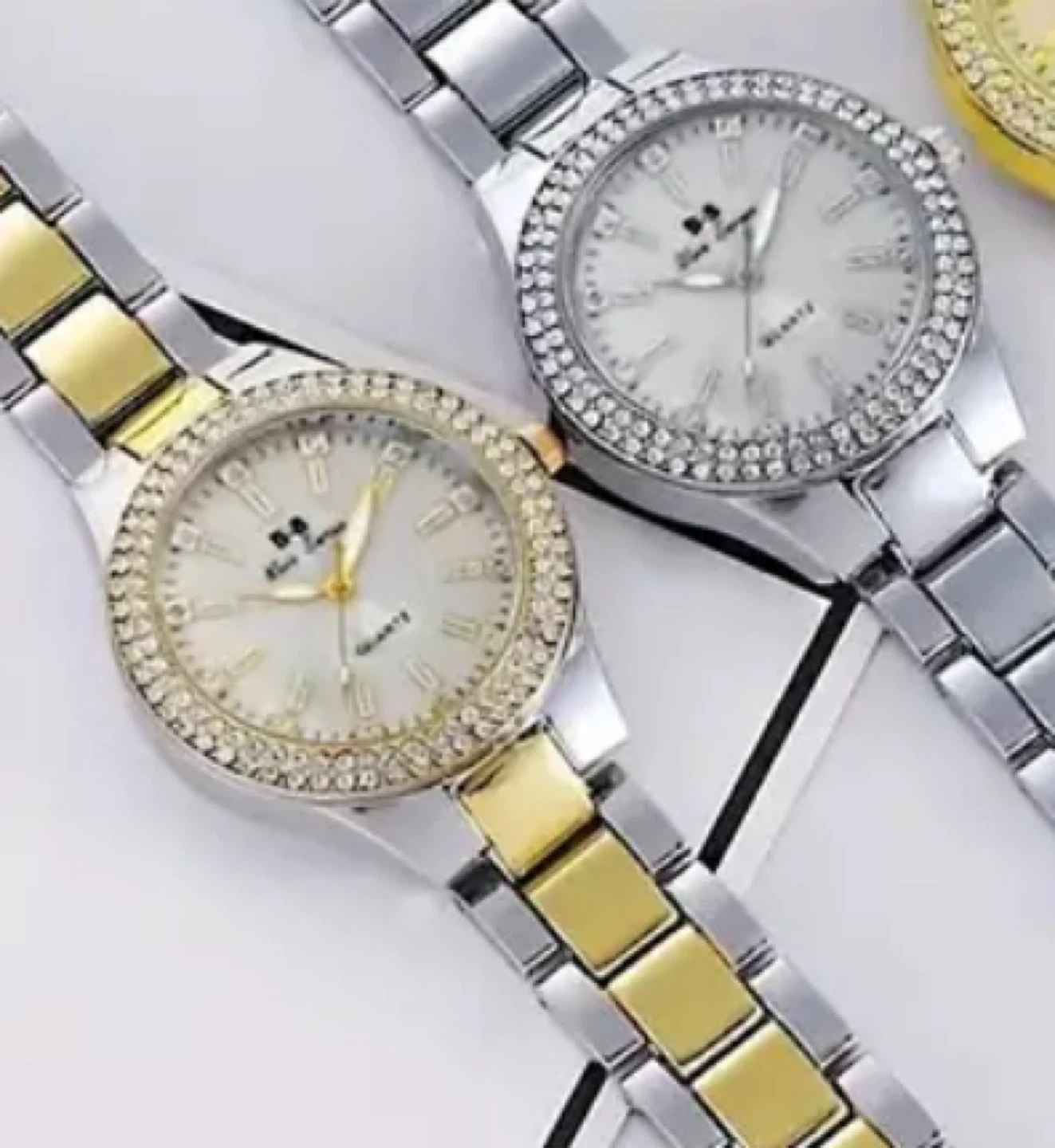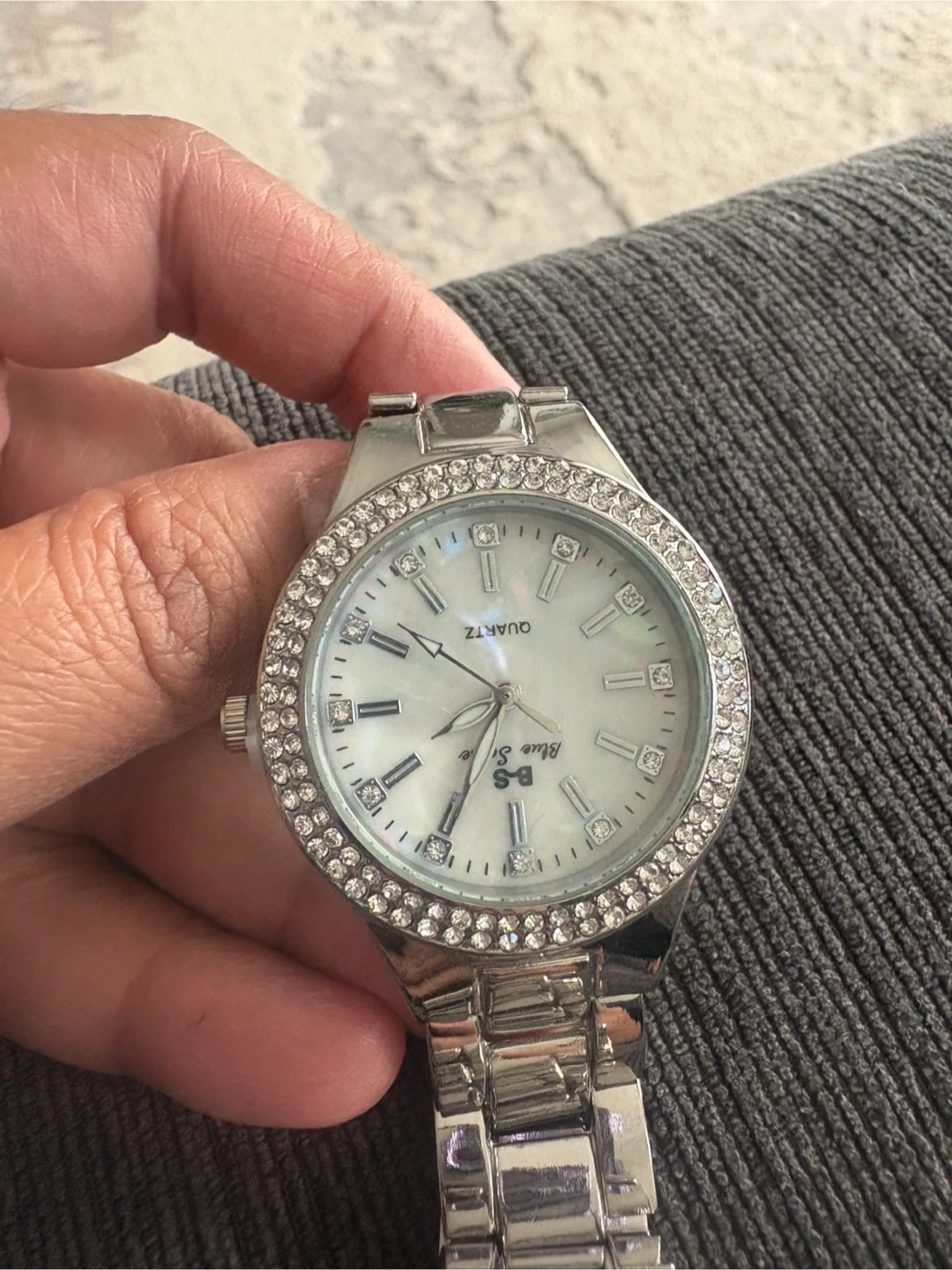 325Selling a B-S Blue Sense quartz watch. The watch has a silver-tone band and a mother-of-pearl face. It's surrounded by rhinestones, giving it a bit of sparkle! Gold silver and silver available