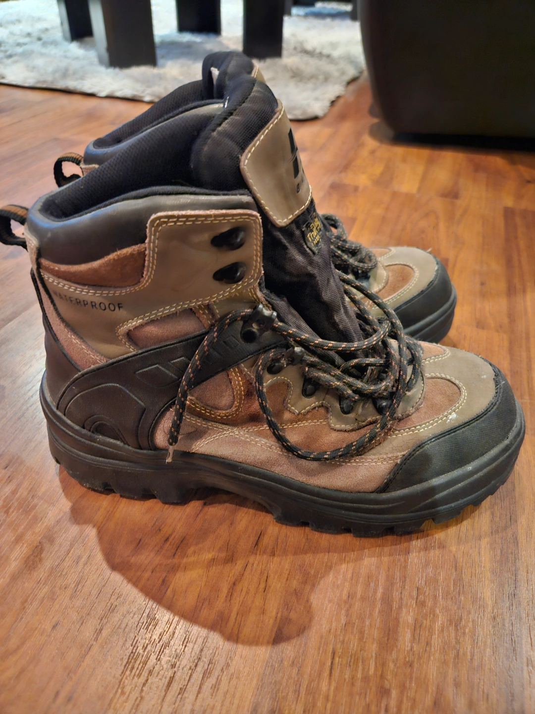 62Men's B.U.M. Equipment hiking boots. Size 11M. Temp proof. Brown and black colour. Good condition.
