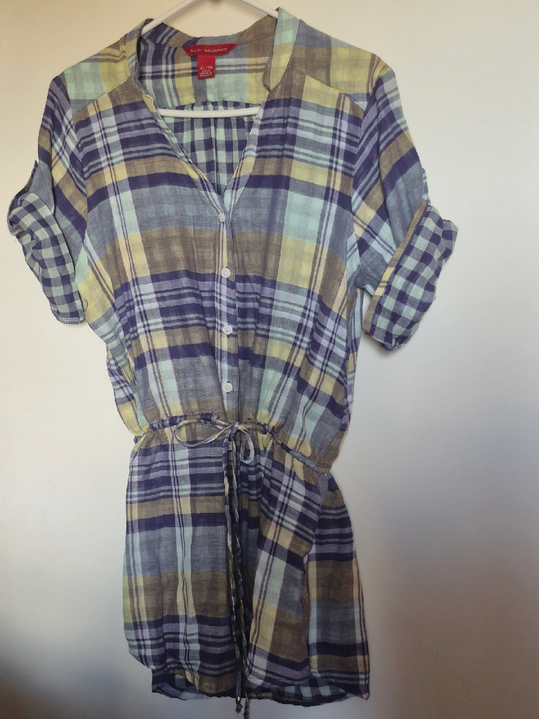 18Cute plaid shirt dress in size XL! It's in great condition and features a button-down front and a flattering drawstring waist. Perfect for a casual day out or dressed up with some accessories