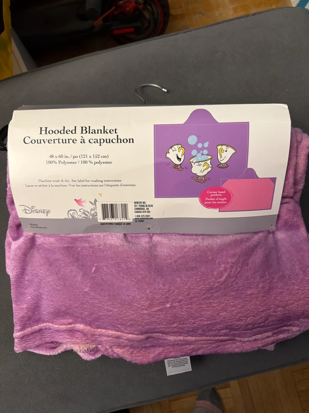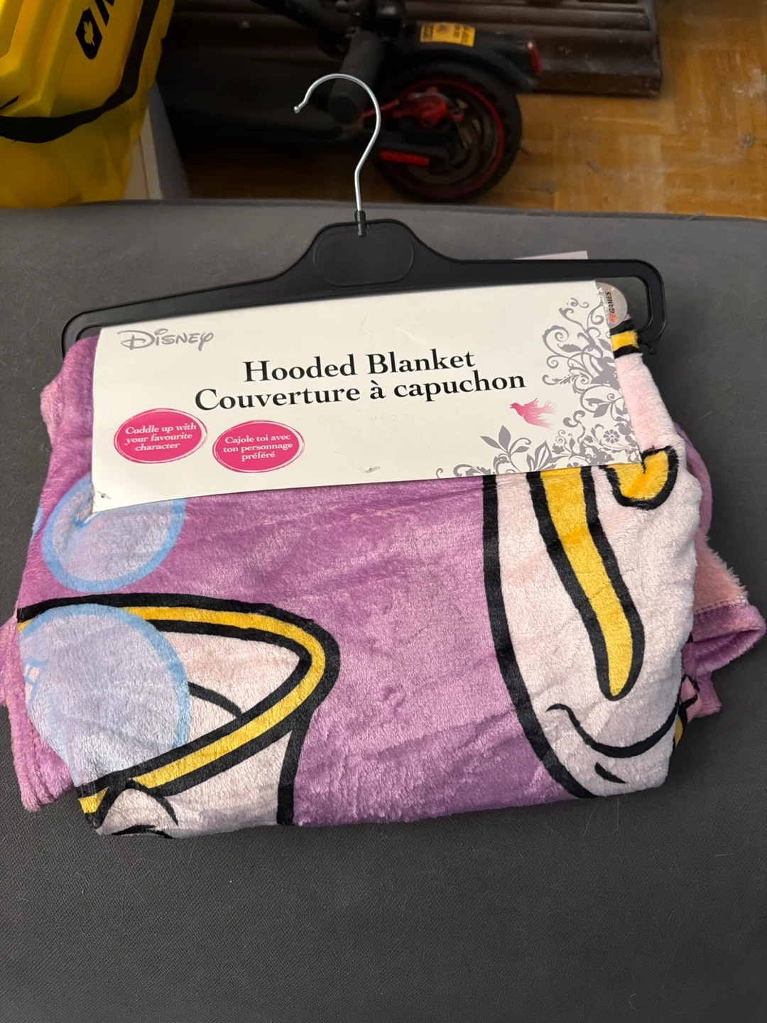 Cuddle up with your favourite characters in this soft hooded blanket. It's 48 x 60 in. (121 x 152 cm) and made from 100% polyester. Machine wash and dry. See label for washing instructions. Brand new