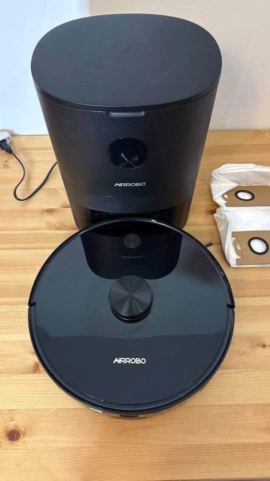 New Airrobo T10+ robot vacuum with self-emptying base. Powerful suction, smart LiDAR mapping, and vacuum + mop function in one device.