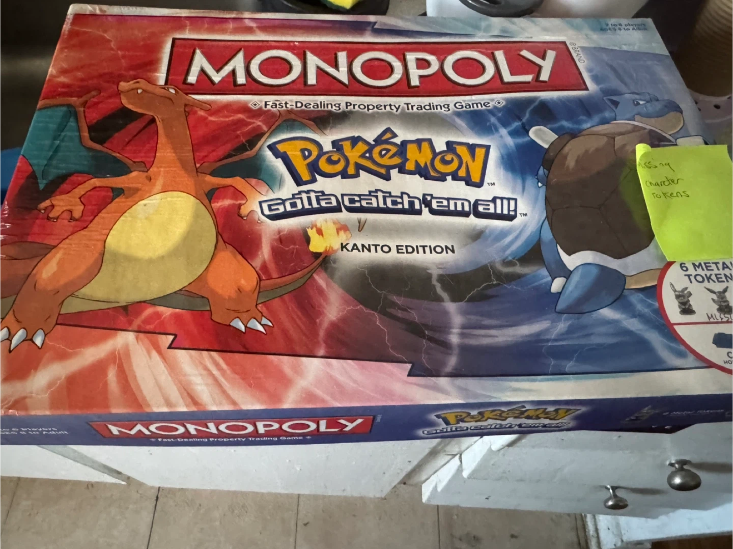 This is the Monopoly Pokémon Kanto Edition board game. It includes the game board and cards. Note that character tokens are missing.