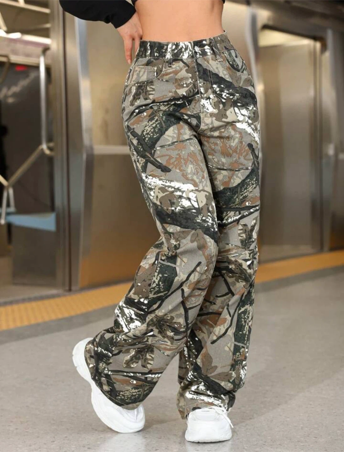 Camo Print Wide Leg Jeans