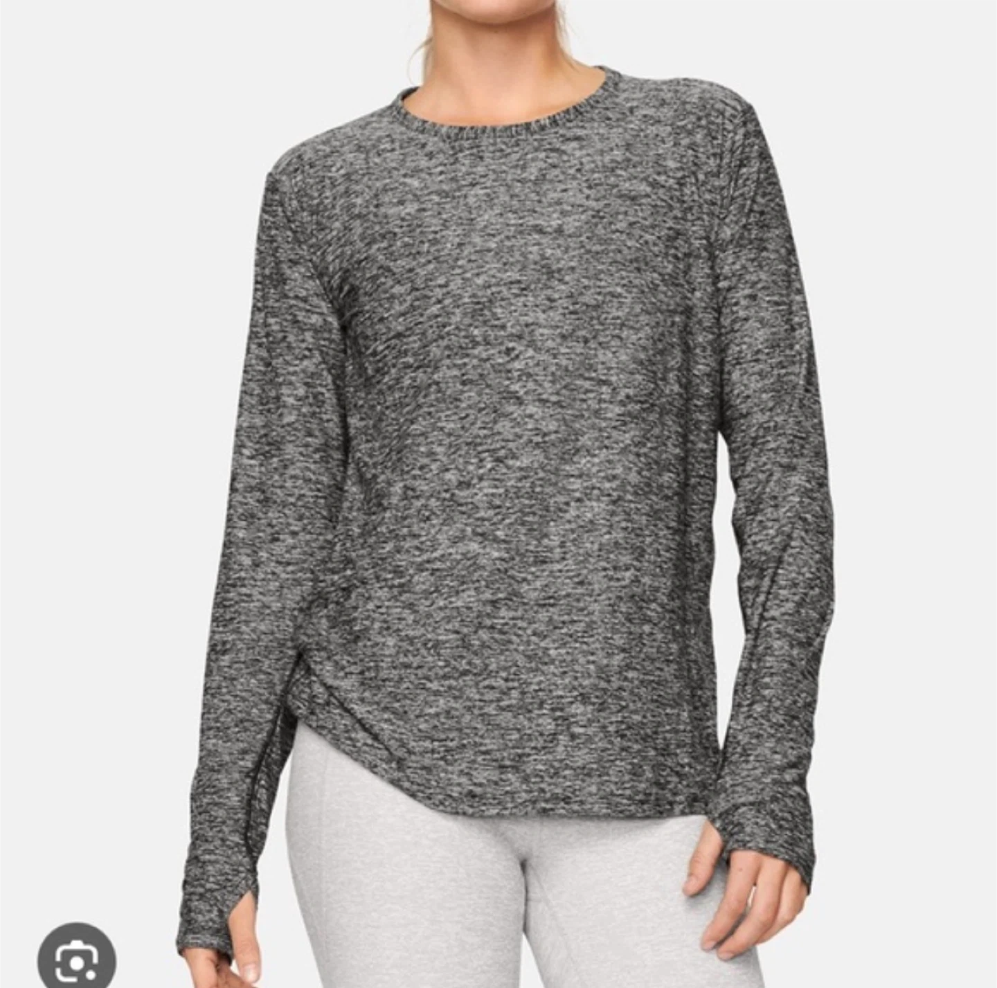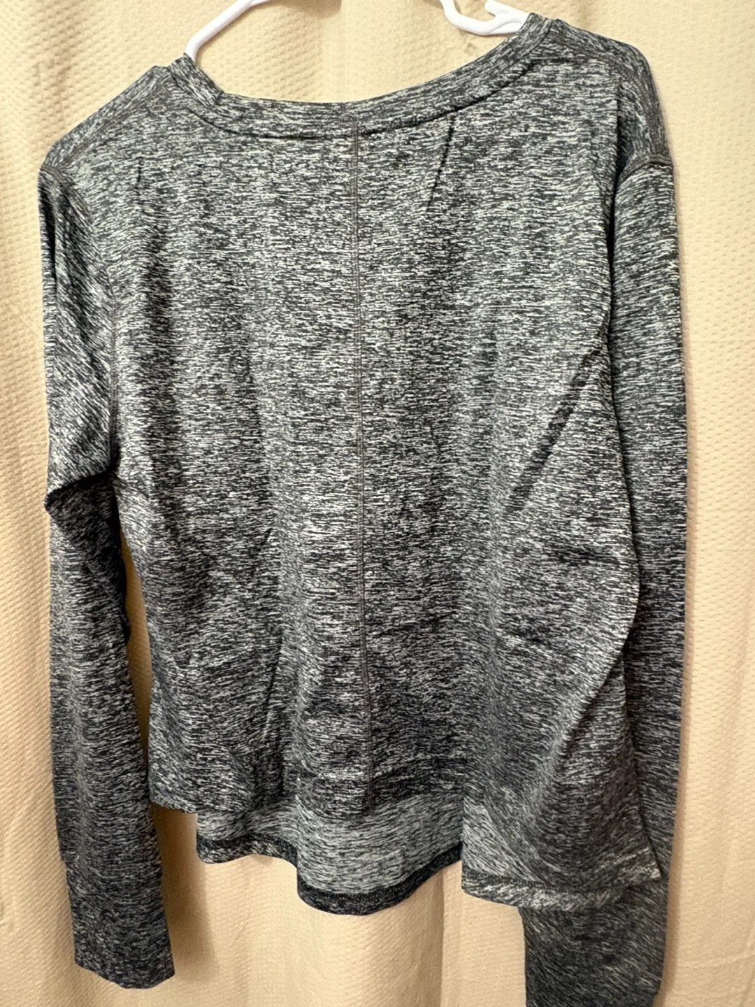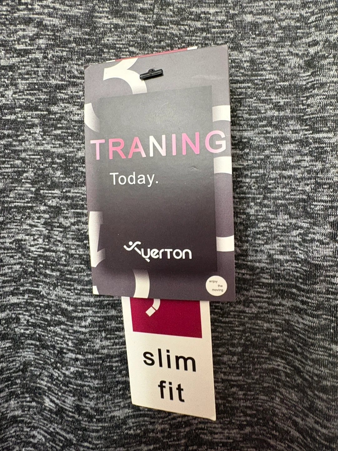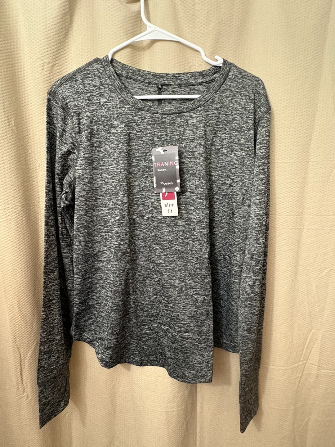 This Kuyerton training long sleeve shirt is in a heathered grey. It's a size XL with thumbholes for a secure fit. Slim fit design for athletic activity.
