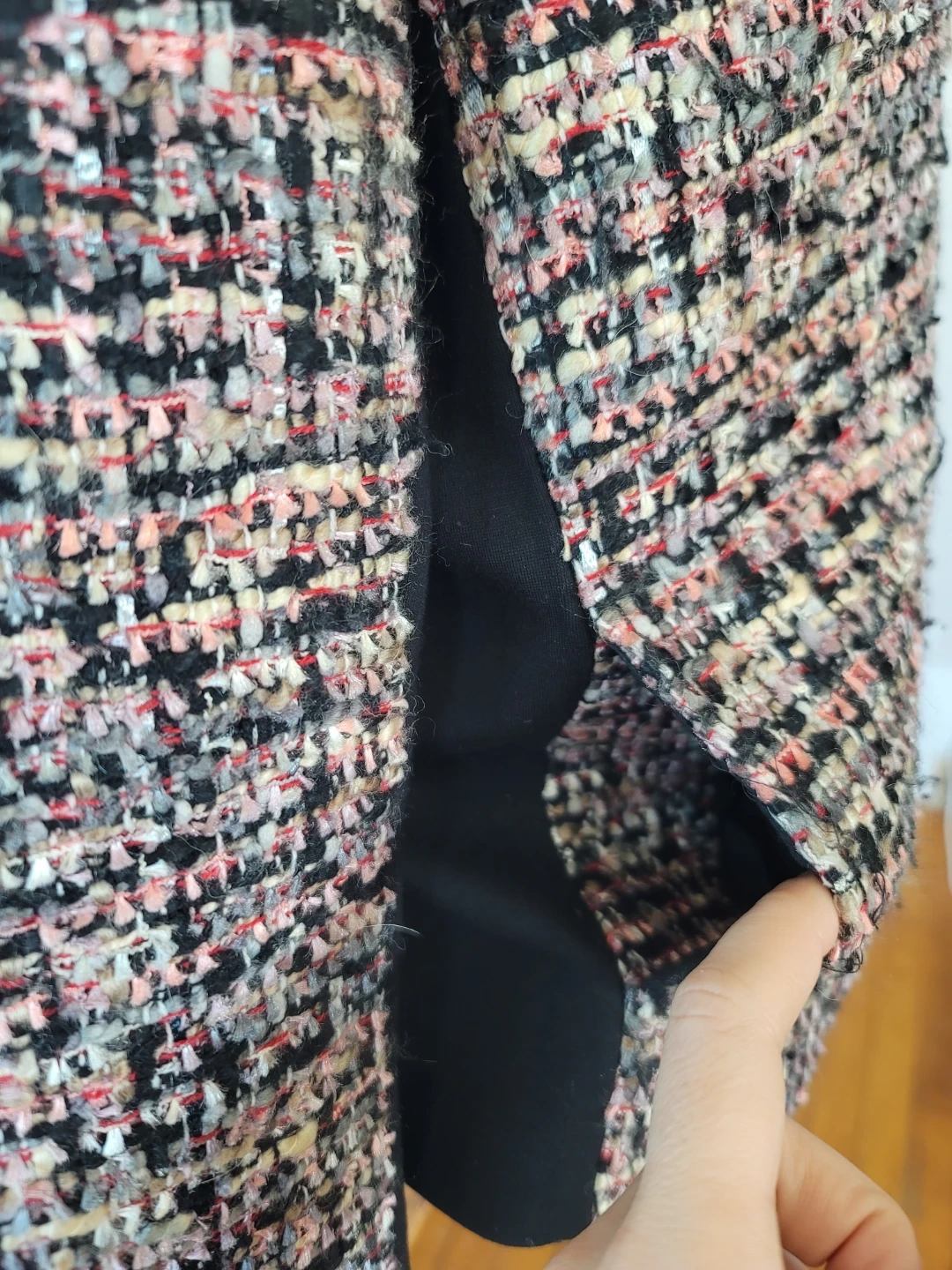 Elevate your wardrobe with this stunning White House Black Market tweed jacket. This piece perfectly blends a timeless Chanel-inspired aesthetic with a modern, edgy moto-style silhouette.