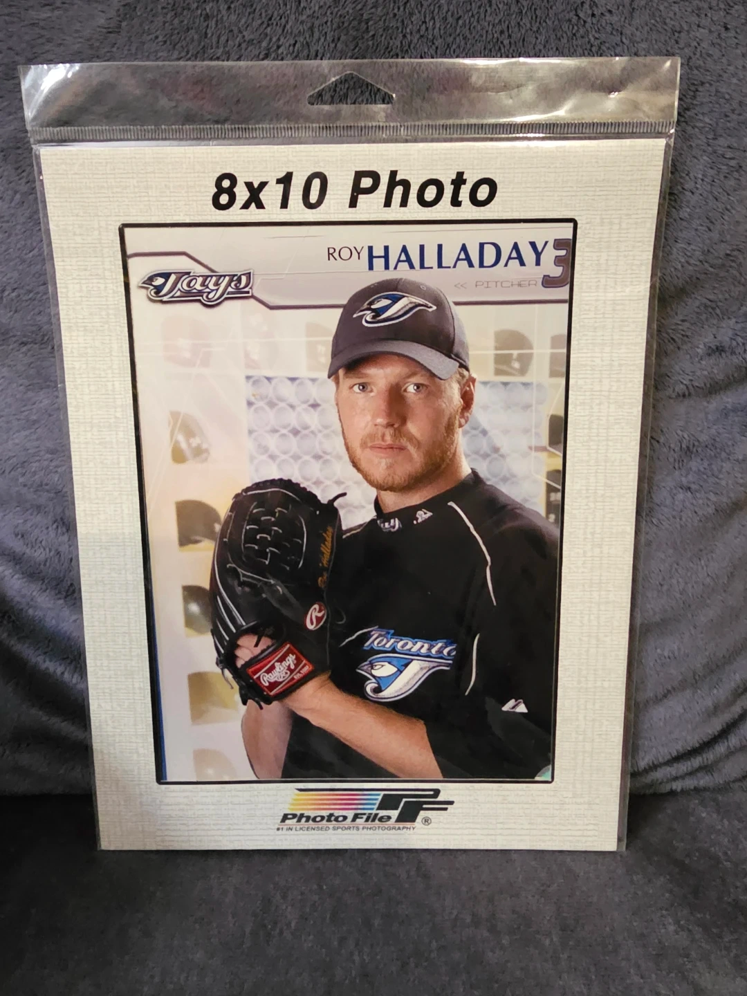 This is an 8x10 officially licensed photo of Roy Halladay. It's custom cropped from an original negative on high gloss photographic paper. This game-action or portrait photograph was taken by a professional photographer, Photo File, Inc.