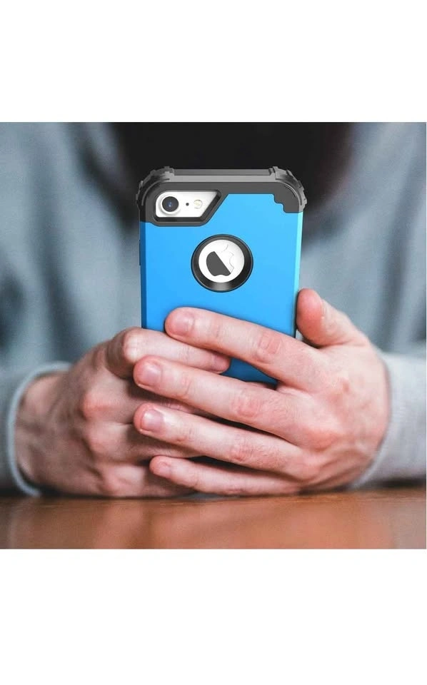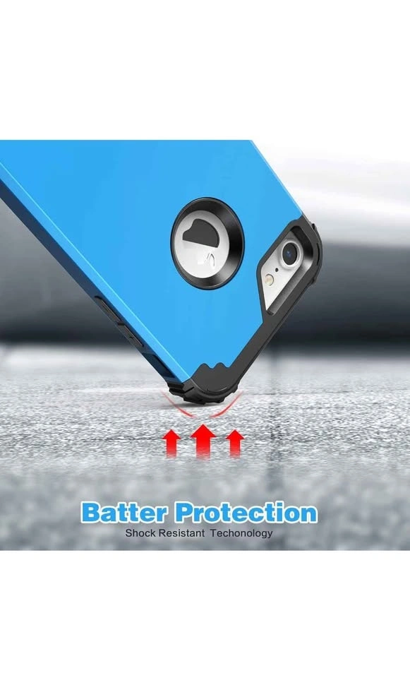 Includes a tempered glass screen protector. This is a 3-in-1 shock absorption case for iPhone 8 or iPhone 7. It features a sturdy heavy-duty hard PC cover with a soft silicone bumper for full body protection. Color: Sky Blue.