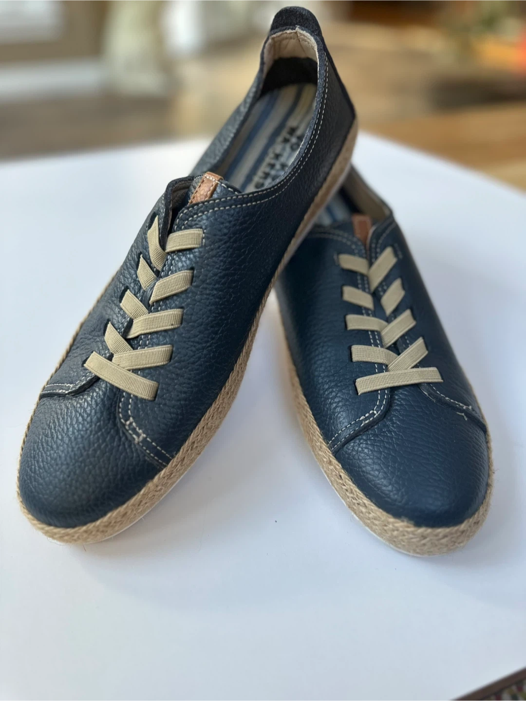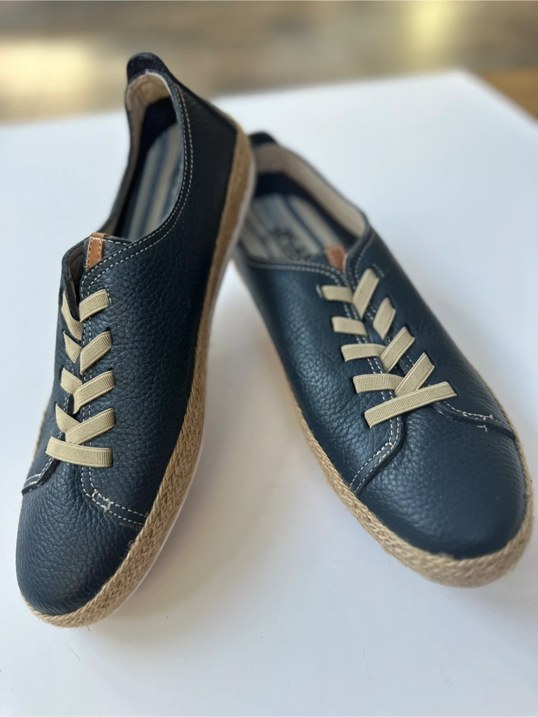 Volks Walkers Navy Blue Leather Espadrilles Sz. 10/EU41