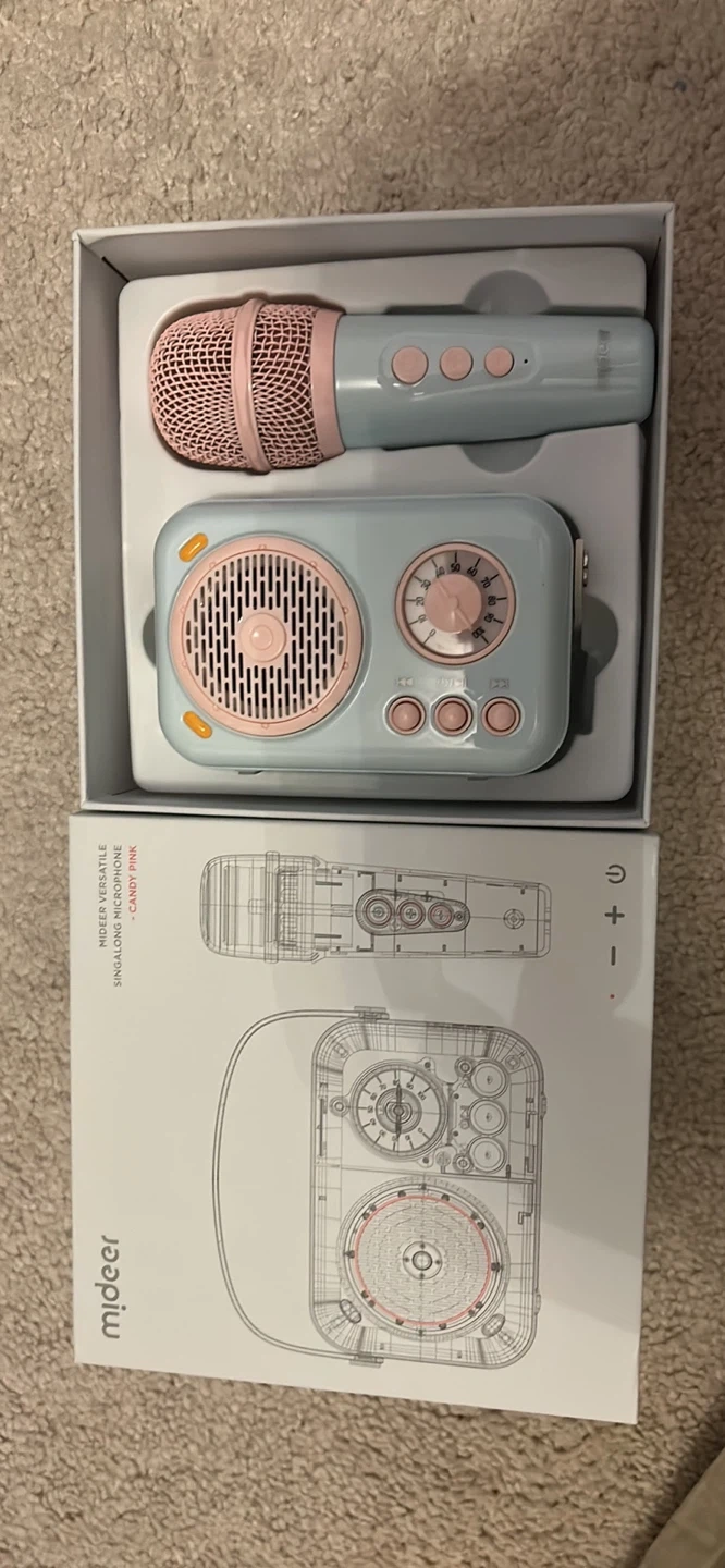 Selling a brand new Mideer Versatile Singalong Microphone in pink in blue. It comes with the box including the charger.