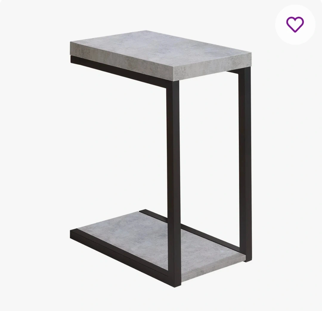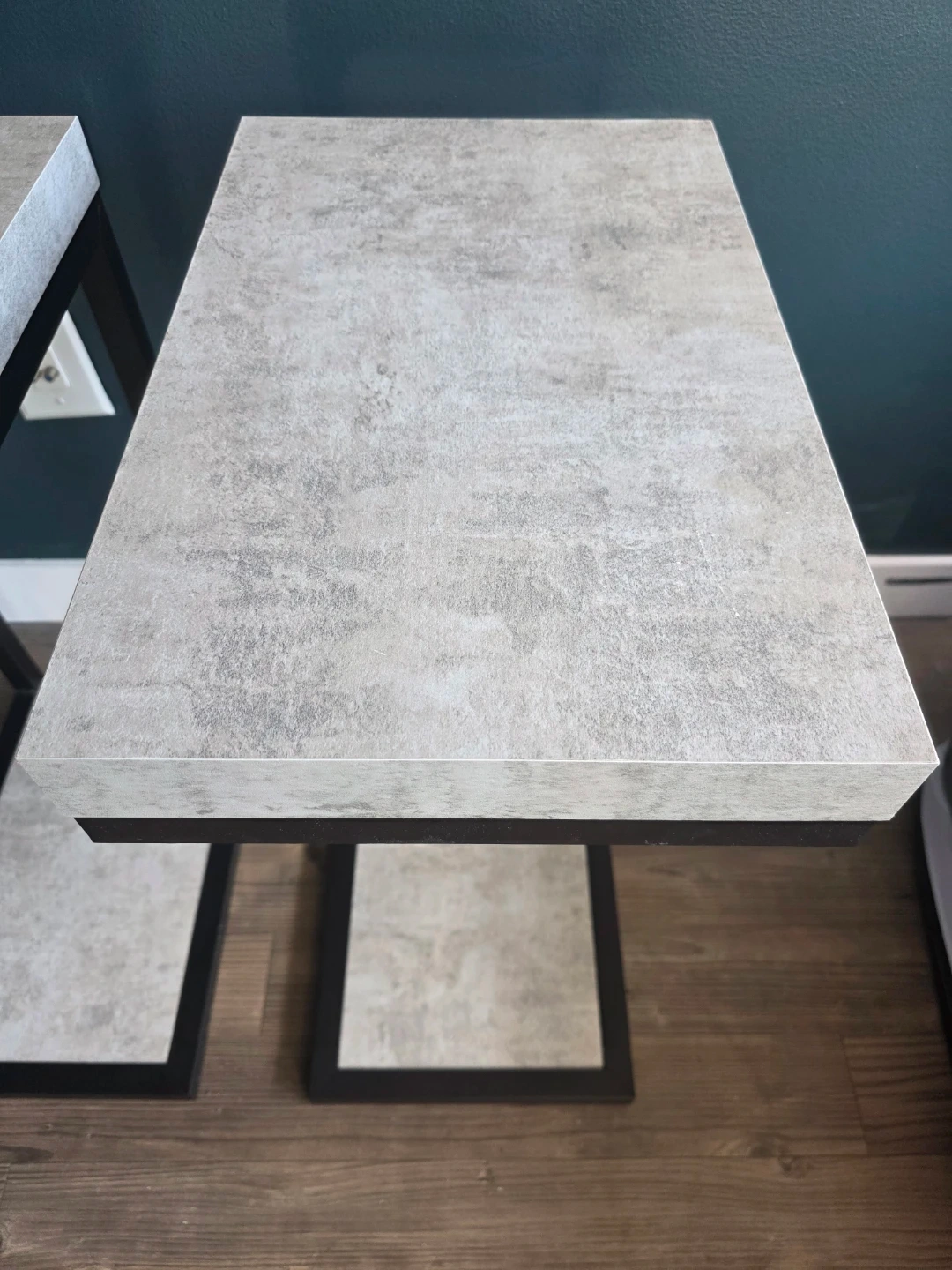 Perfect for a modern living area, this sleek and sturdy side table is full of industrial details. Dark and flat, the metal base and legs are full of structure. Thick and defined, the faux cement top sports a simple hue that looks great when paired with delicate features. Bold angles and industrial hues create a depth-filled piece that is perfect for use with a sofa or chair. Add depth with the subtle variations in visual texture from the tabletop.