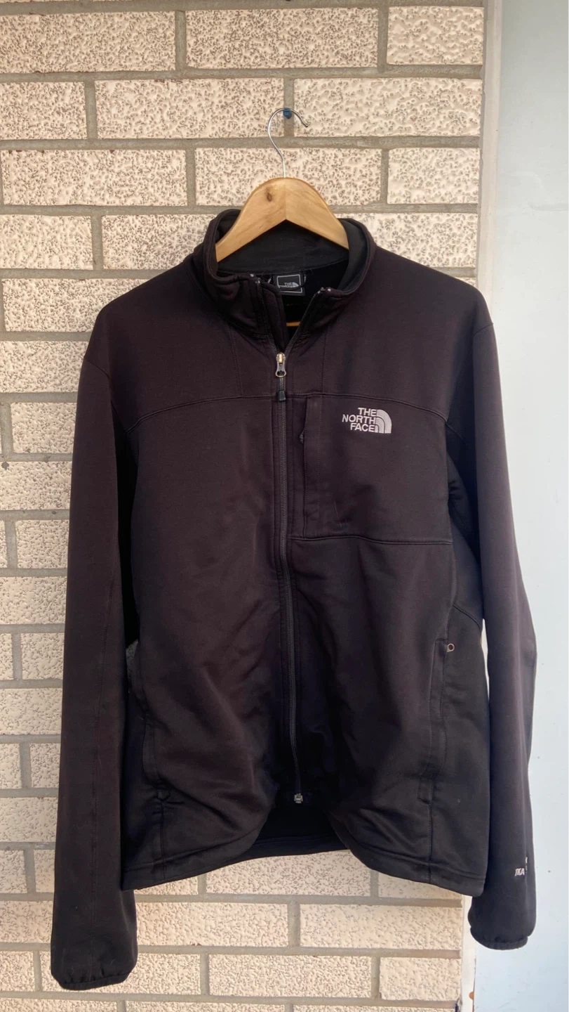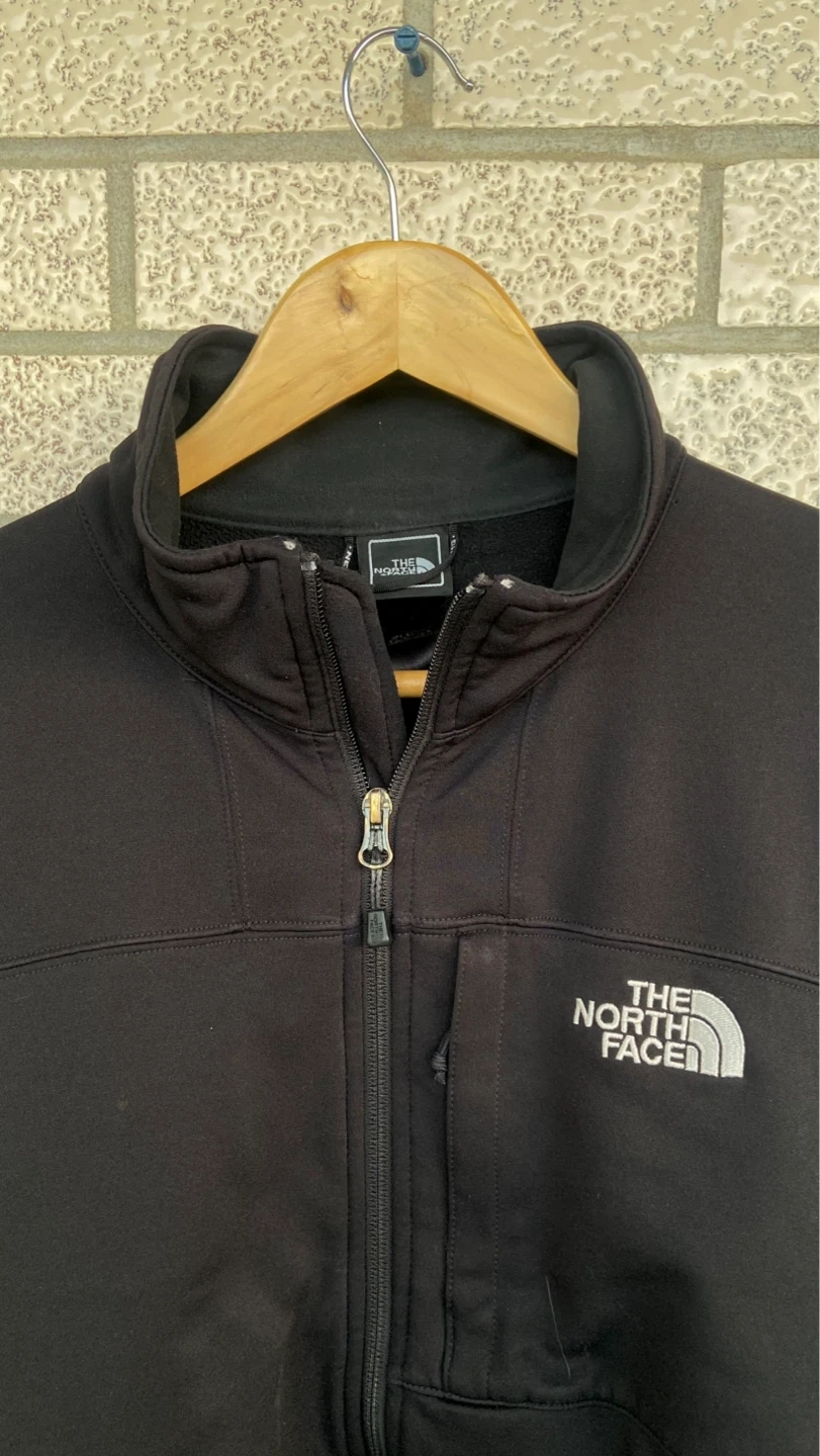 Black full zip fleece jacket from The North Face. It's made of soft fleece material. This jacket is perfect for layering during colder weather!