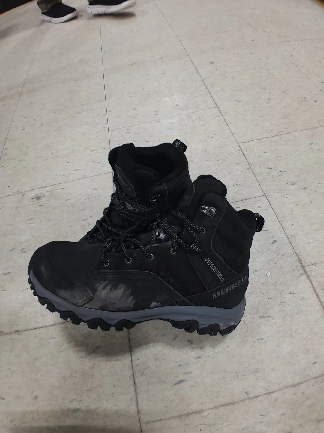 Merrell black mid-height hiking boots. Lace-up closure for a secure fit. Durable sole for traction. These boots are great for hitting the trails! Men's Size 8.
