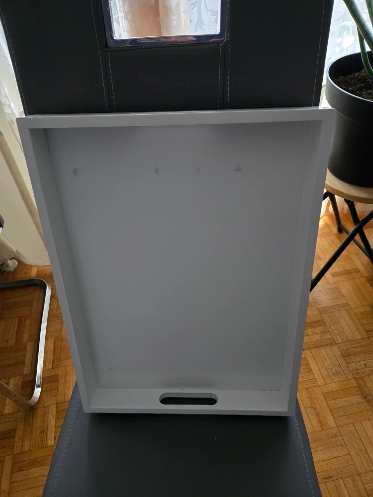 This is a lovely white serving tray, perfect for breakfast in bed or carrying drinks to the patio. It's in good condition, ready for a new home!