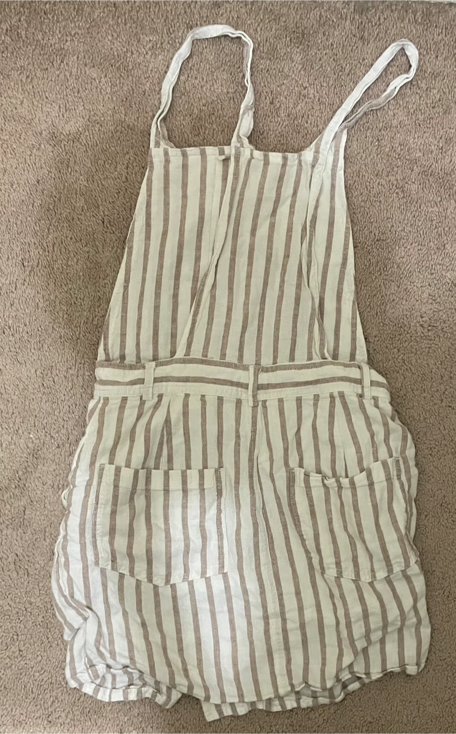 Striped Linen-Blend Pinafore Overall Dress - Tan/White