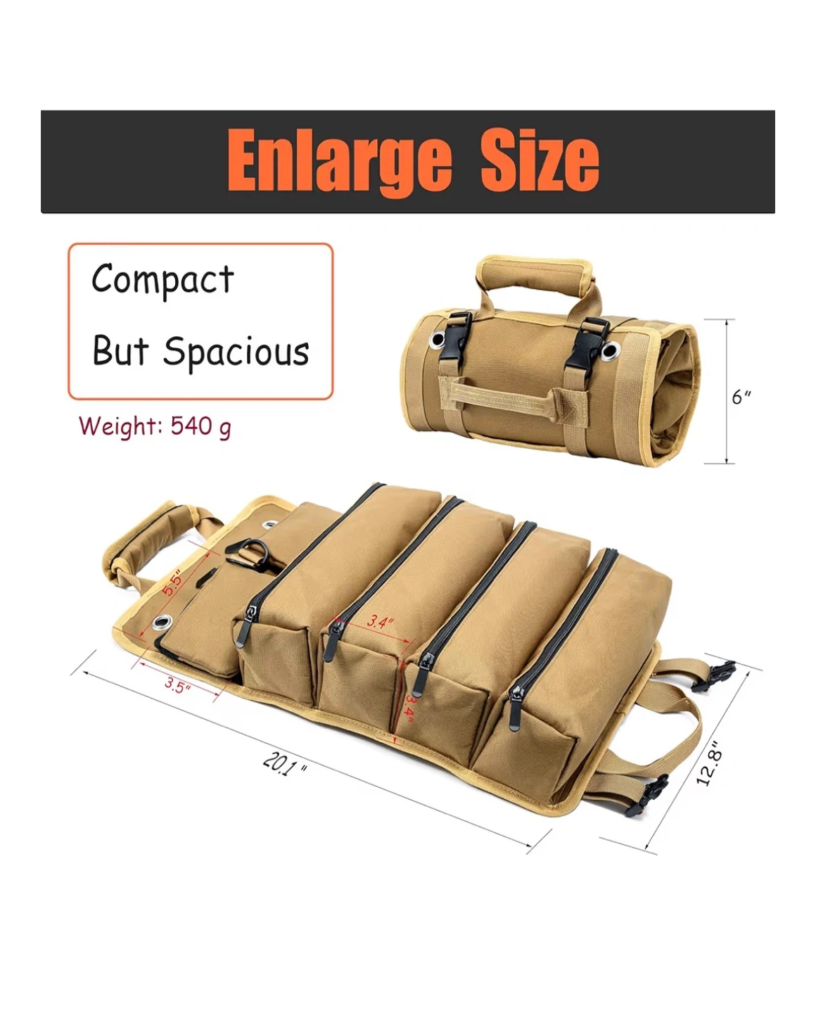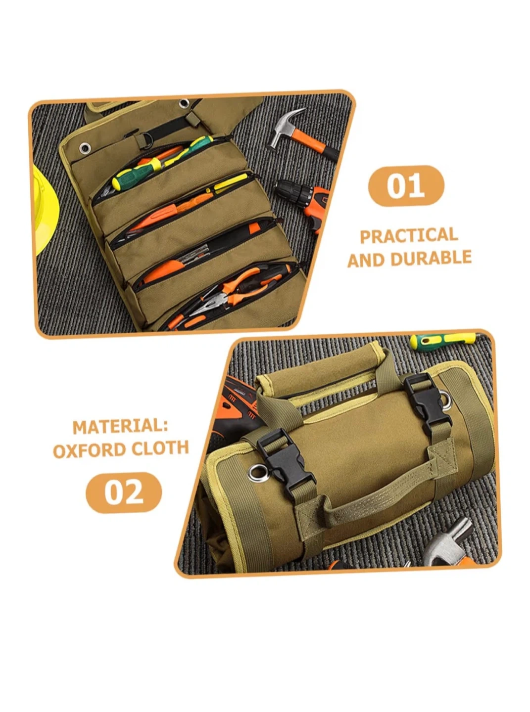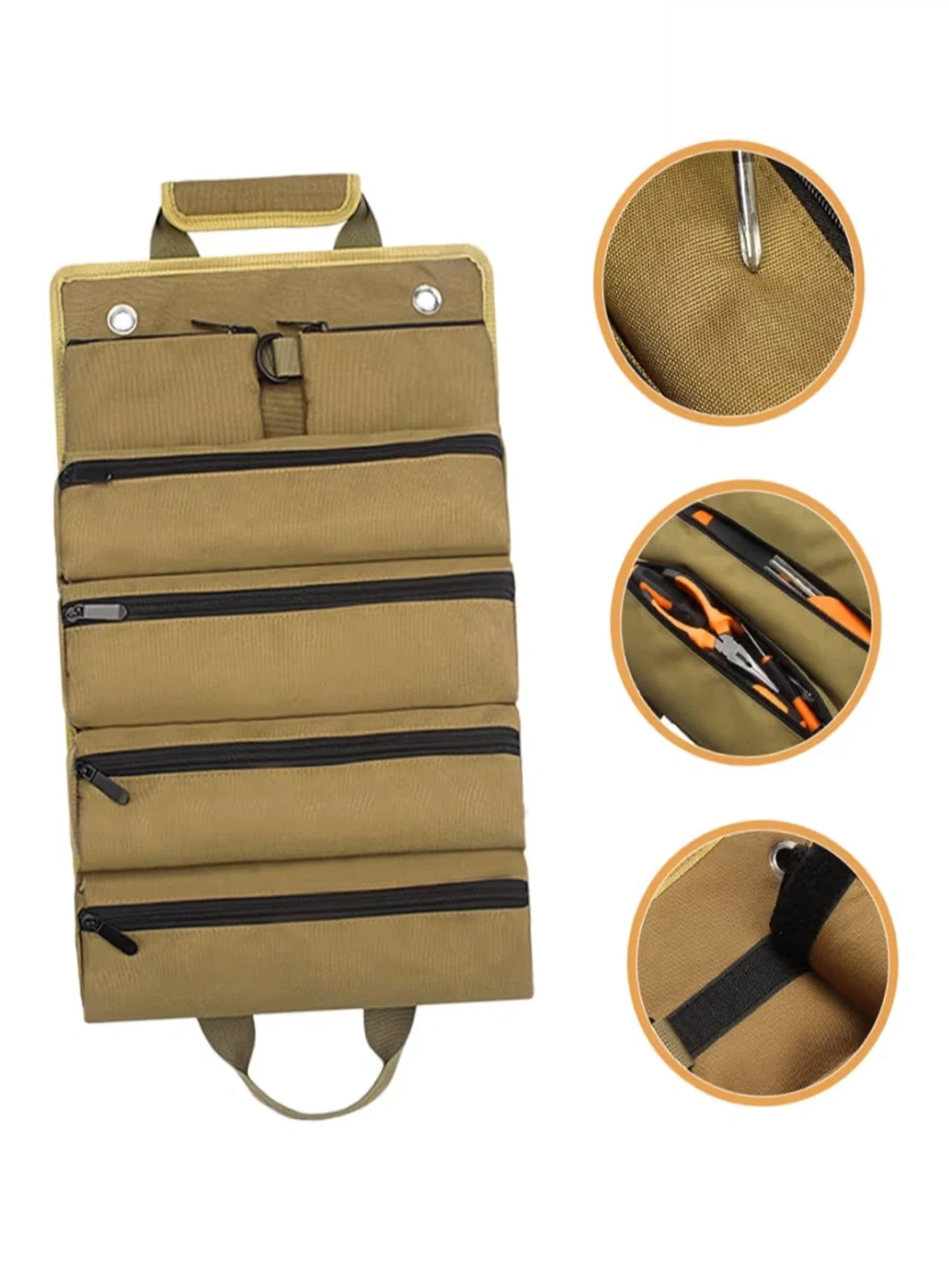 Khaki Oxford Cloth Tool Roll Bag Organizer