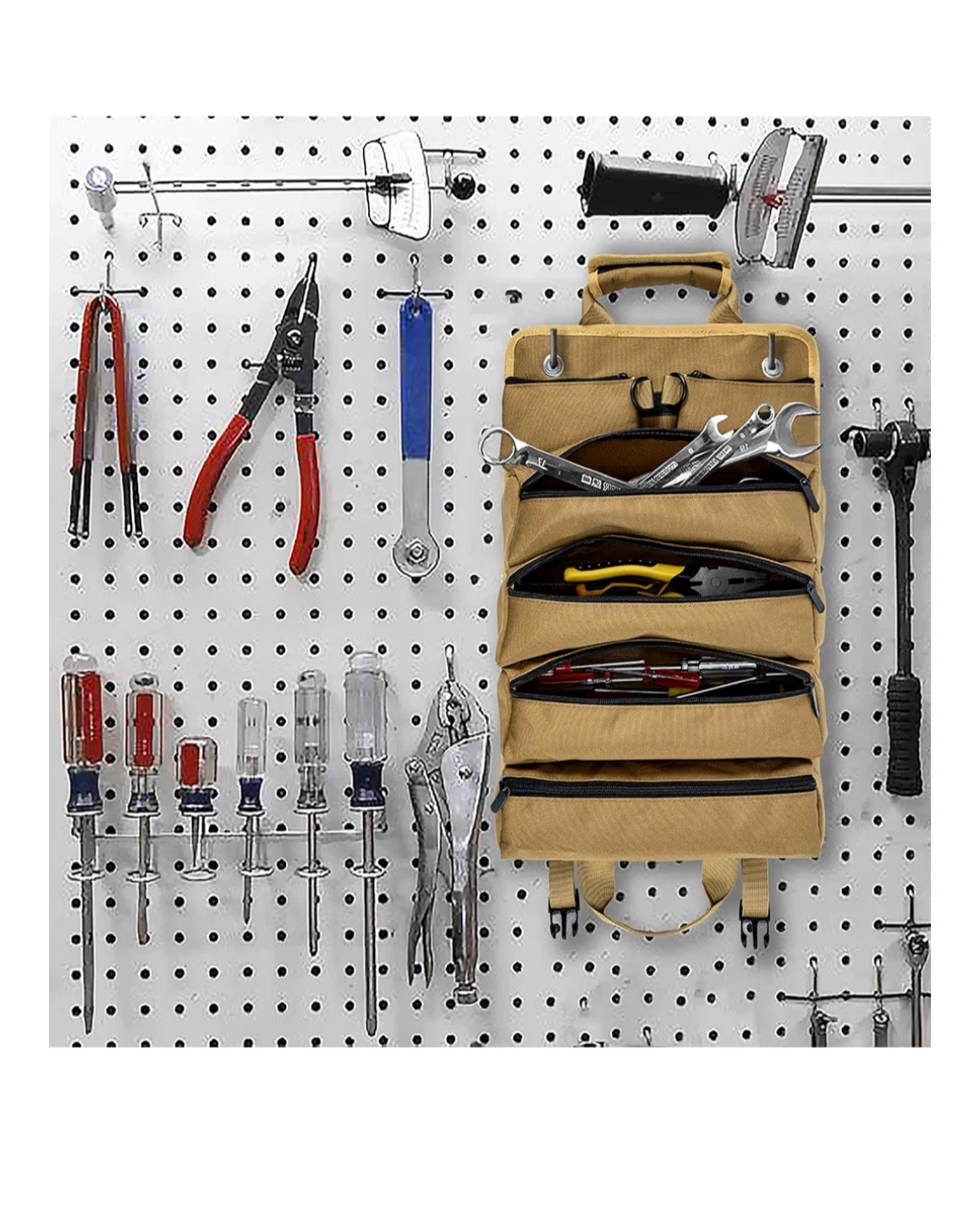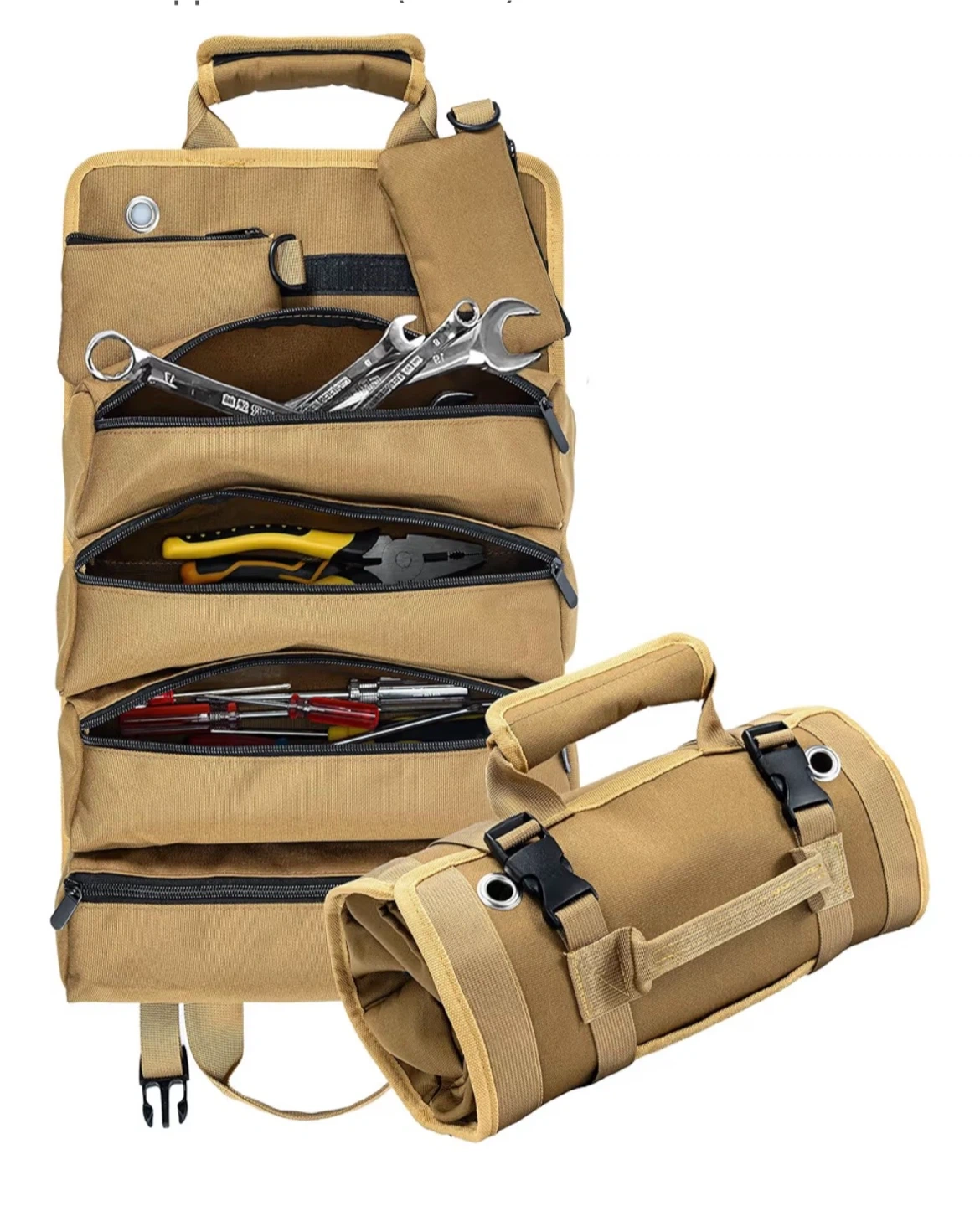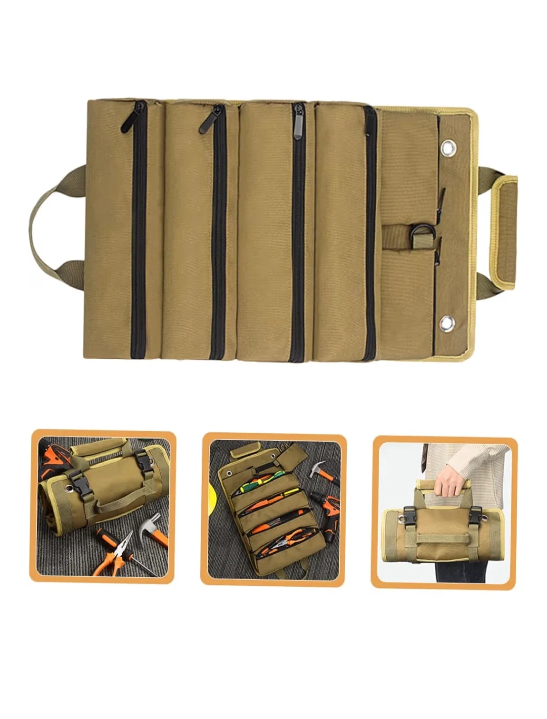 Khaki Oxford Cloth Tool Roll Bag Organizer