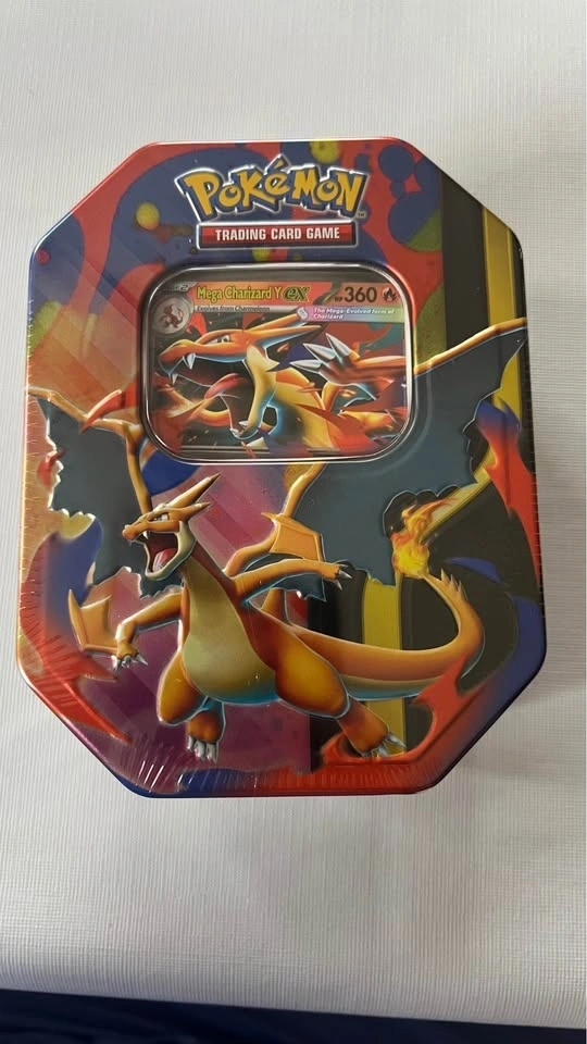 Cool new sealed Pokemon TCG Charizard tin. Has a Mega Charizard Y ex promo card, 4 booster packs, and a code card for Pokemon TCG Live. Super fun for collectors or players.