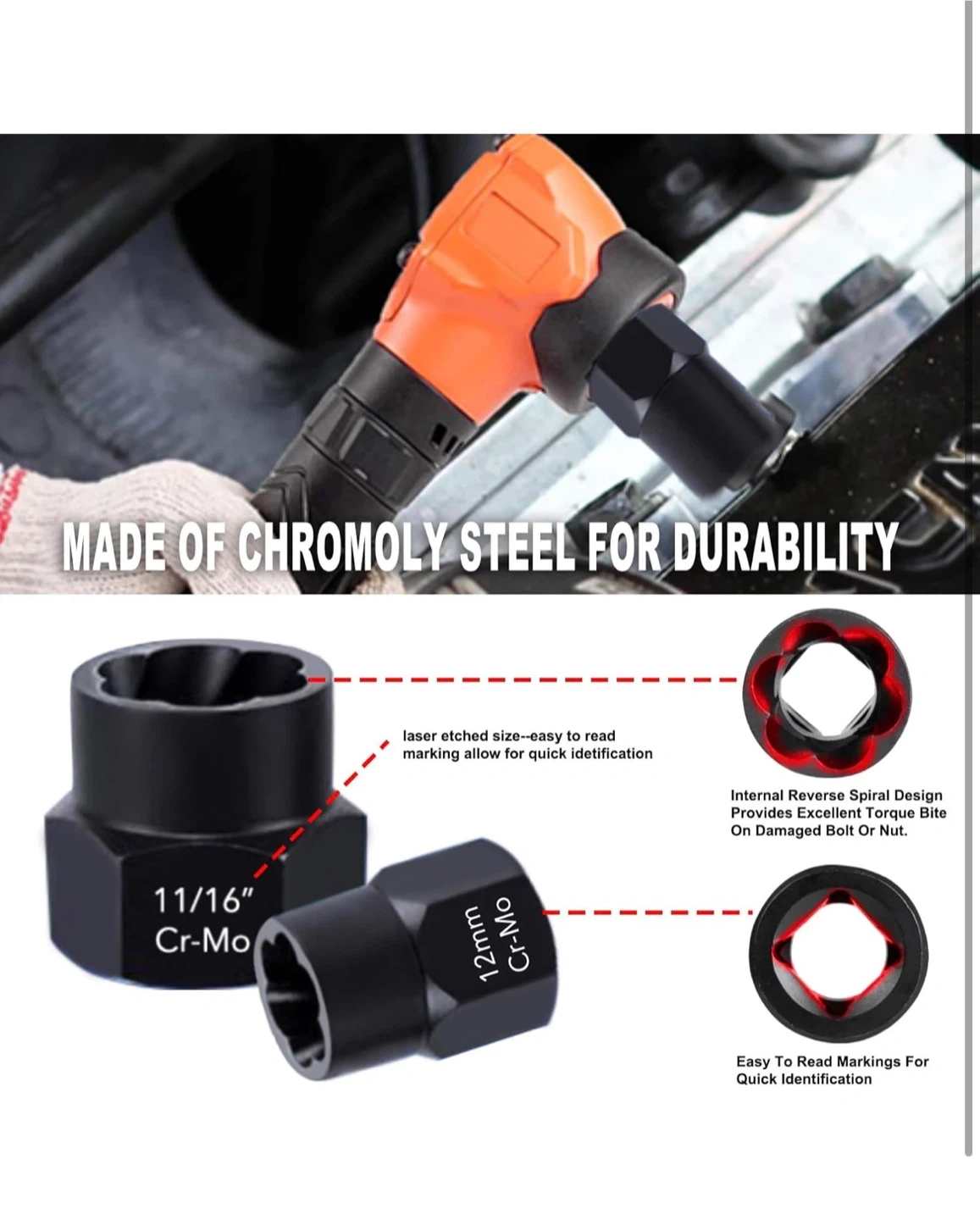 Stop struggling with damaged bolts! This 15-piece bolt & nut extractor set removes stripped, rusted, rounded, and stuck nuts quickly and easily. Perfect for mechanics, DIY repairs, automotive work, and home tool kits.