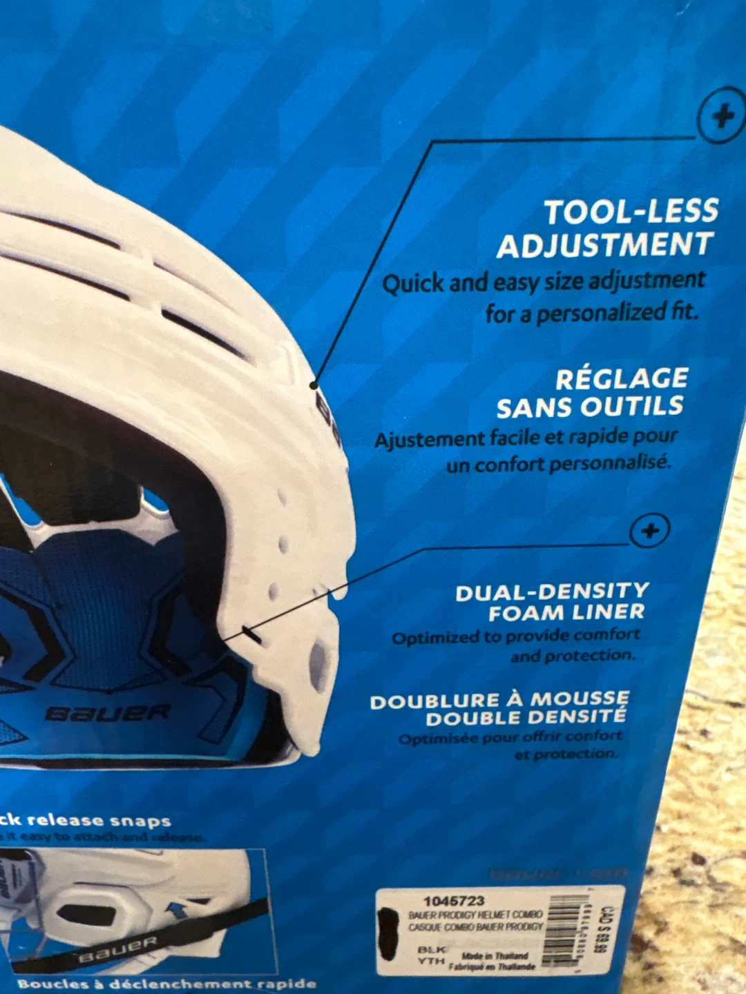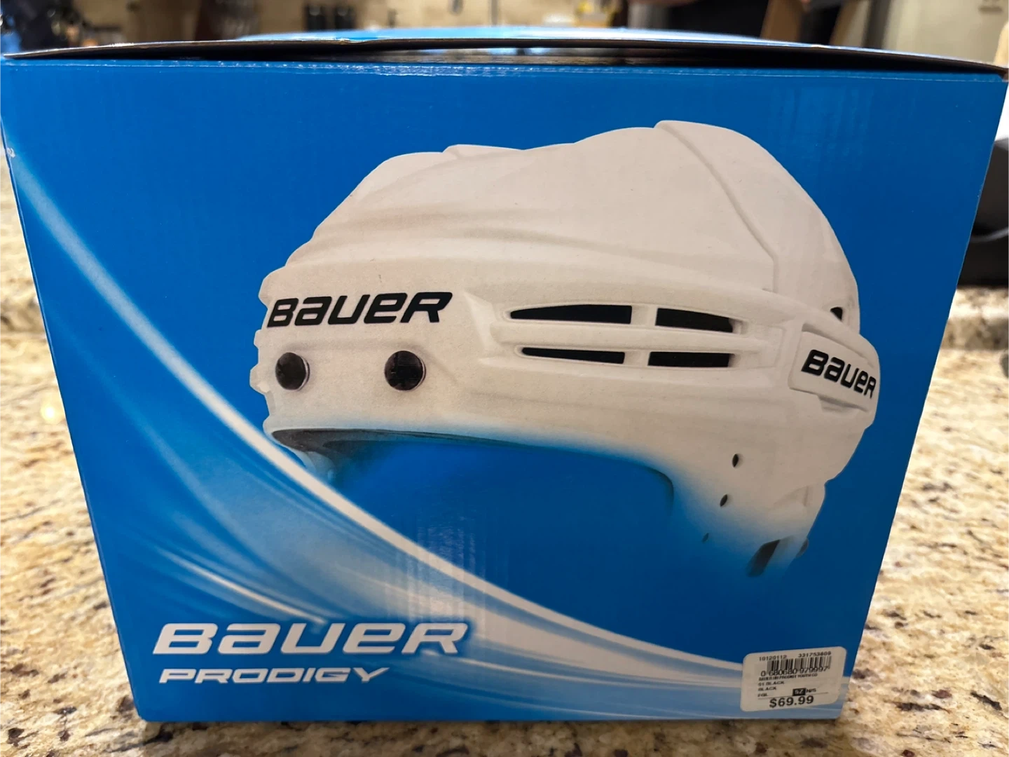 This Bauer Prodigy youth hockey helmet is black with a dual-density foam liner. It features tool-less size adjustment for a personalized fit and quick-release snaps for easy attachment. Adjustable clips accommodate a range of face shapes for an optimal fit. Black color. Size Youth. Still have the receipt from Sportchek.