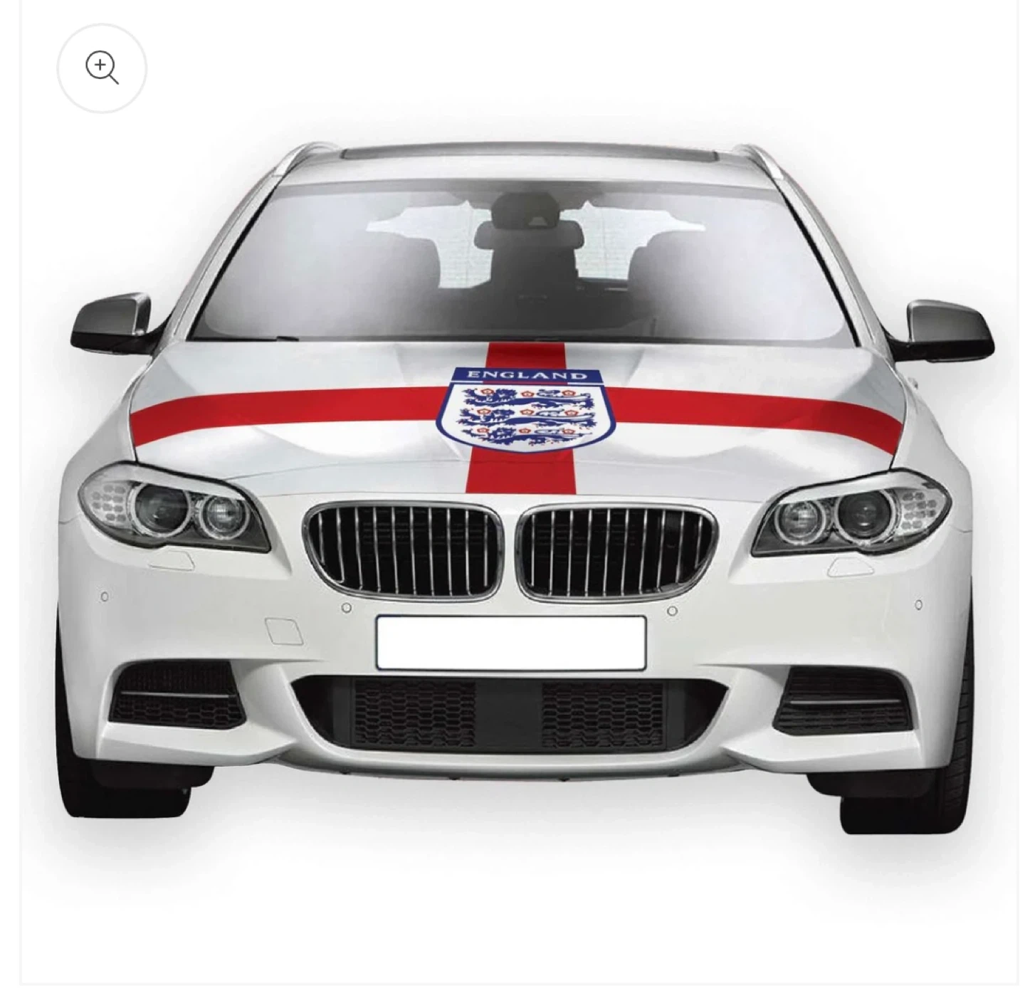 England Lion car hood cover features a bold red and white St. George's Cross design with the England crest. It's designed to fit over your car's hood for a patriotic look. Simple to apply for showing your team spirit!