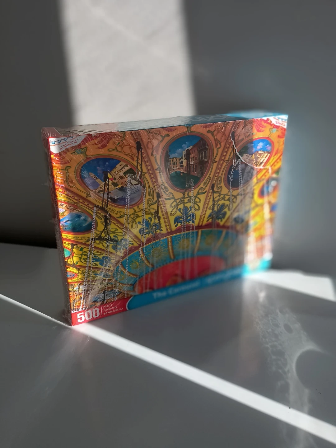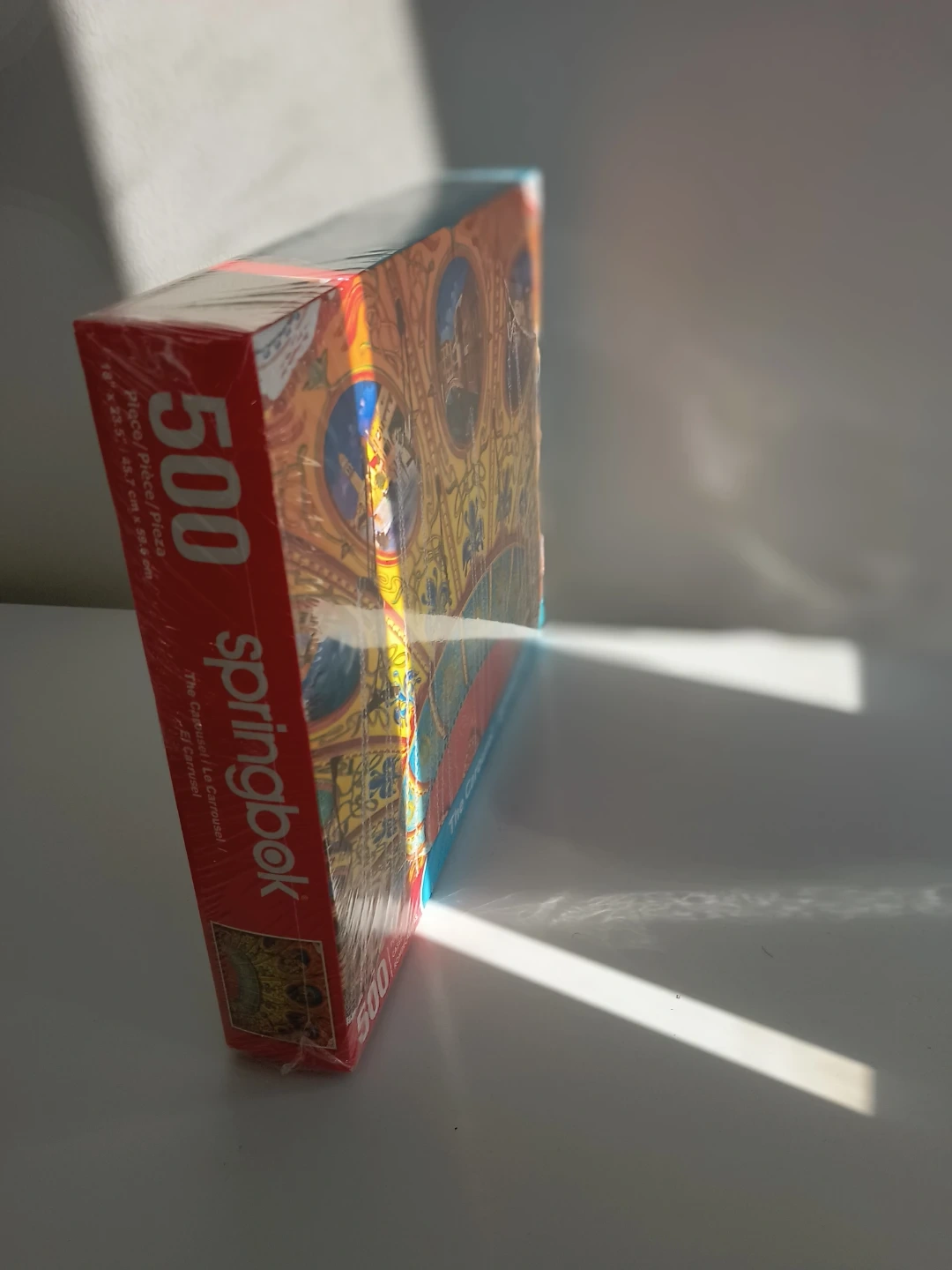 This is a new, sealed 500-piece jigsaw puzzle from Springbok called 'The Carnival'. It measures 18 x 24 inches when completed. This puzzle would be fun for anyone who enjoys a challenging yet rewarding activity!