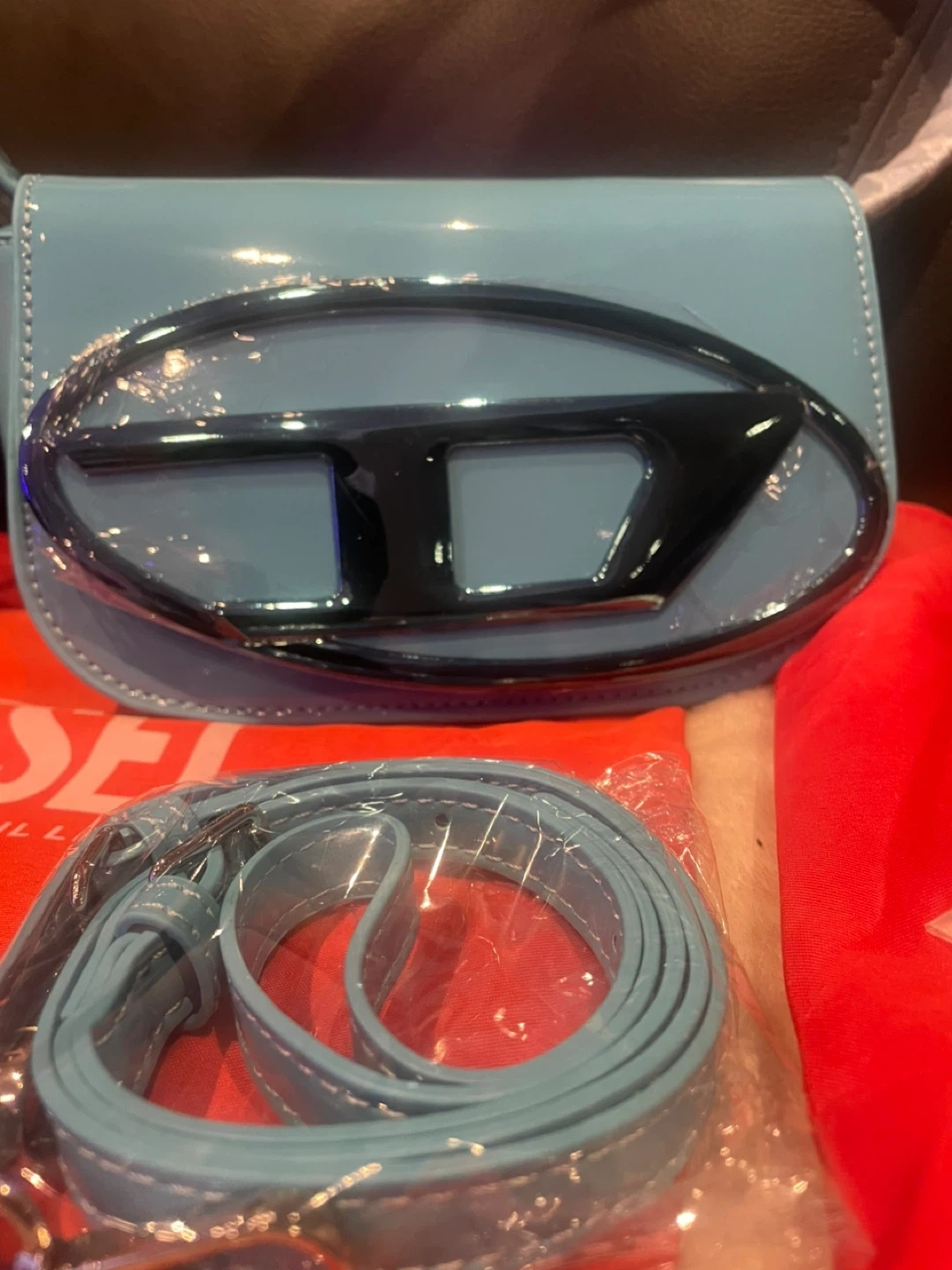 Stylish Diesel handbags crossbody available in yellow and blue. Each bag features the iconic Diesel logo. Includes adjustable straps for versatile wear.