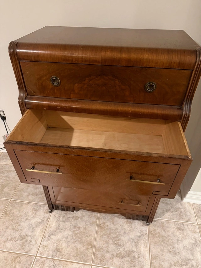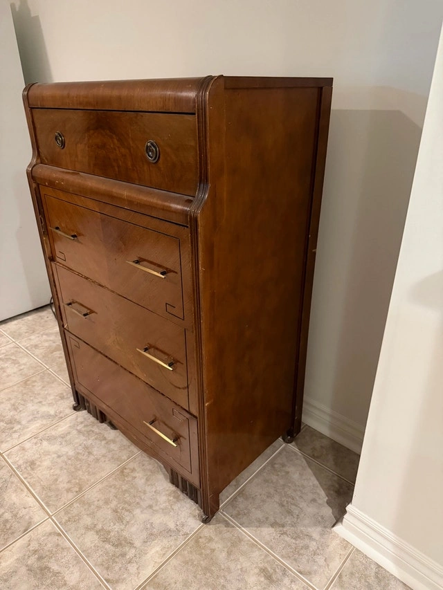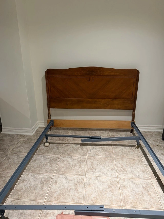 Wood bed frame for double mattress and matching dresser. Headboard 56.5” wide. Dresser is 45” high, 18” deep, and 29” wide. For sale by owner. Cashless payment and cash accepted. Curbside pickup available.