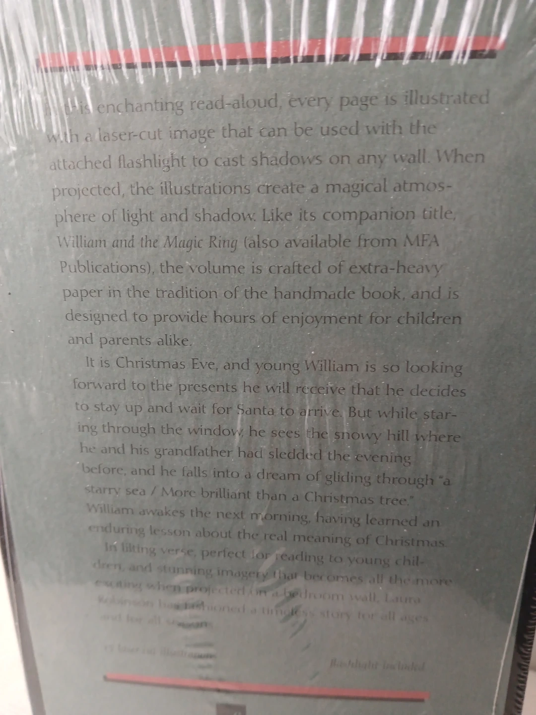 This enchanting read-aloud story features a laser-cut image for casting shadows. It's crafted from extra-heavy paper and designed to provide hours of enjoyment for children and parents alike. The story follows young William on Christmas Eve and explores the meaning of the holiday.