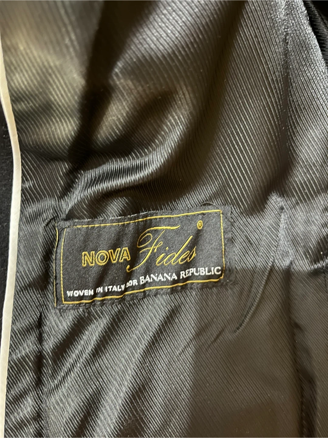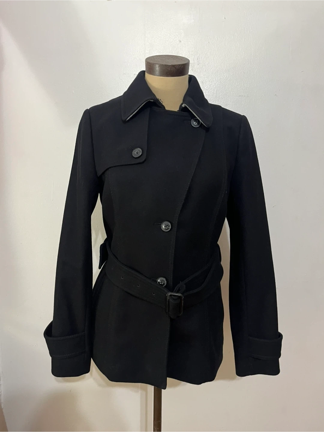 This Banana Republic short coat is made from a wool blend. It features a belted waist and button closure. Size is 2. Very fitted.