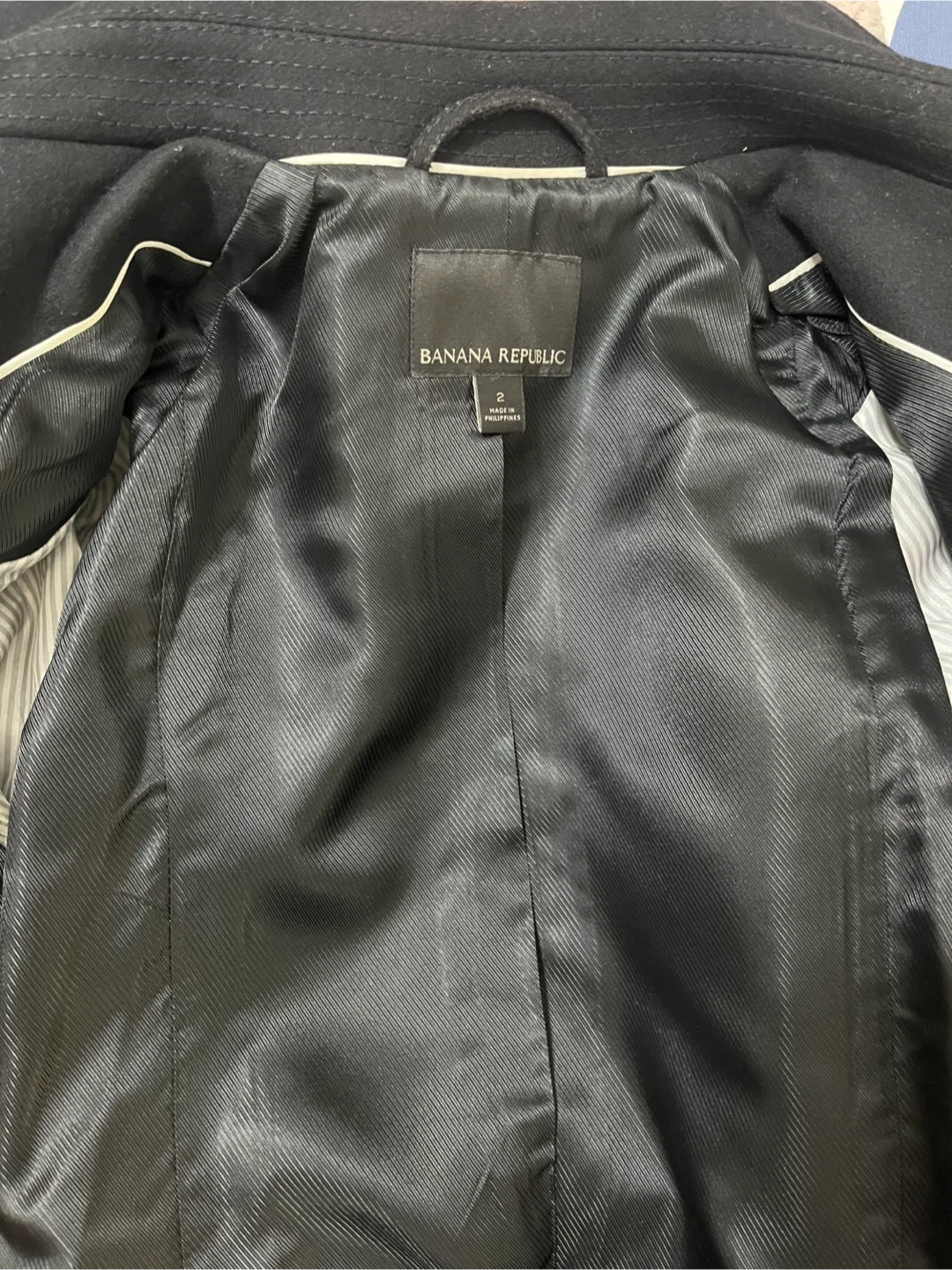 Banana Republic Black Wool Blend Trench Coat Size 2