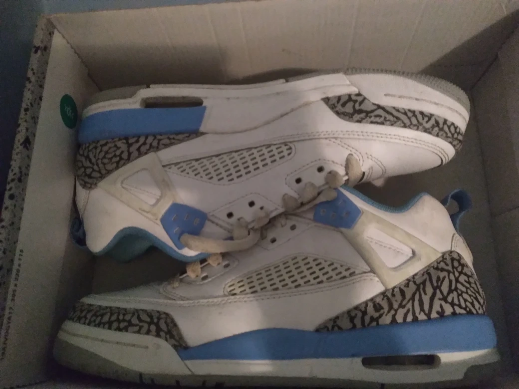 Selling a pair of Jordan 3 Retro UNC sneakers in size 6. They come with the original box and are in good condition. The shoes feature a white leather upper with Carolina blue accents and the classic elephant print detailing.