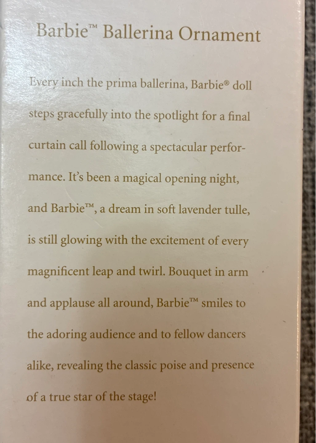 New Hallmark Barbie Ballerina Ornament 2008/9