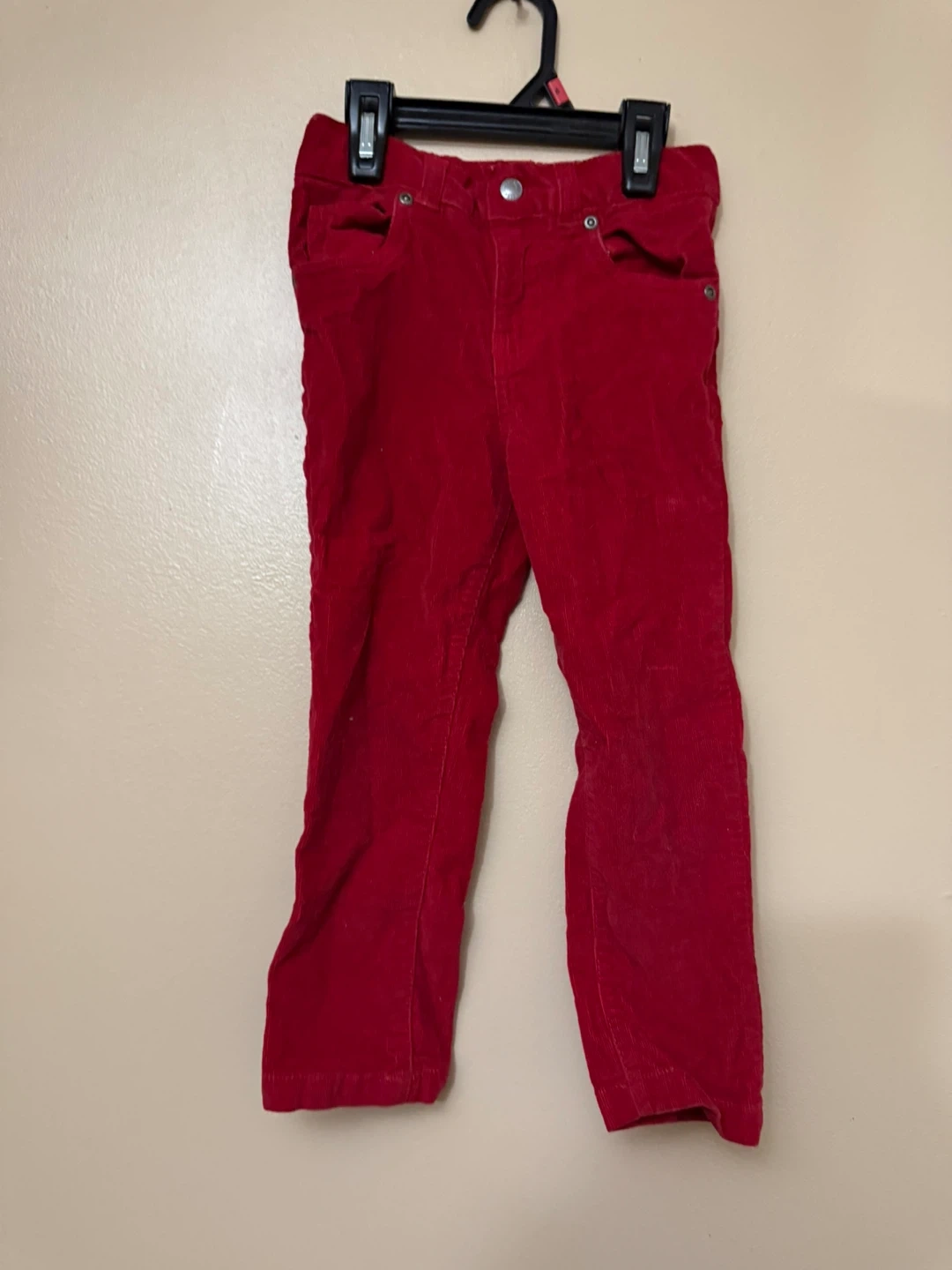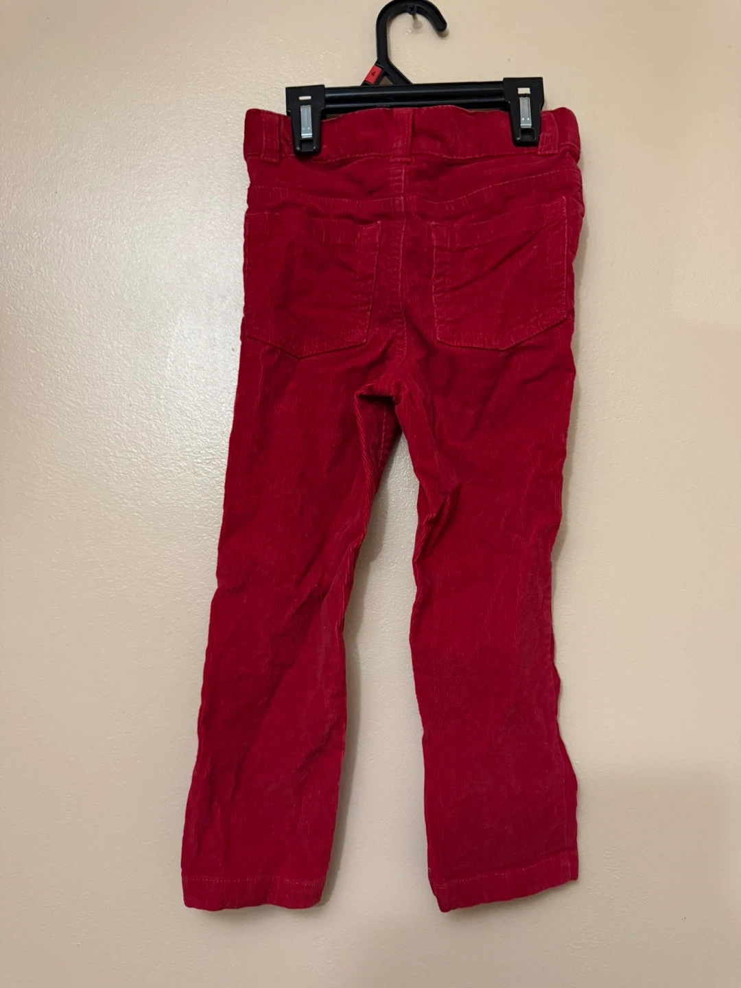 These are George red corduroy pants, size 4T, perfect for your little one! They are in good condition, showing some signs of wear but still have plenty of life left. A fun and stylish addition to any child's wardrobe!