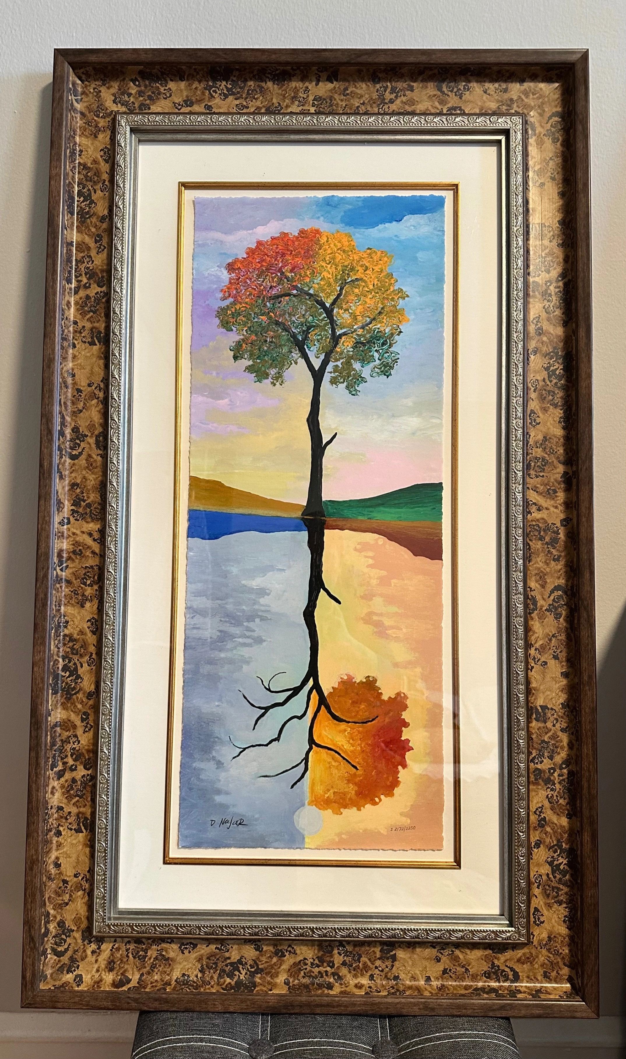 Hand-signed, limited edition giclée on paper with Certificate of Authenticity, professionally framed and ready to hang. Beautiful tree reflection composition, excellent condition. Appraised value in 2022 is $1,650. This piece comes framed with glass and ready to hang. Still in the gallery box, never hung.