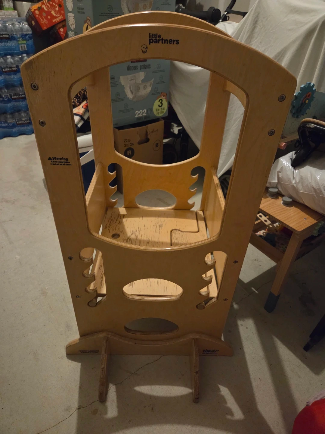 This wooden learning tower is perfect for toddlers and young children. It's made from durable wood and features a safe, stable design. Kids can stand at counter height to help cook, learn, or explore!