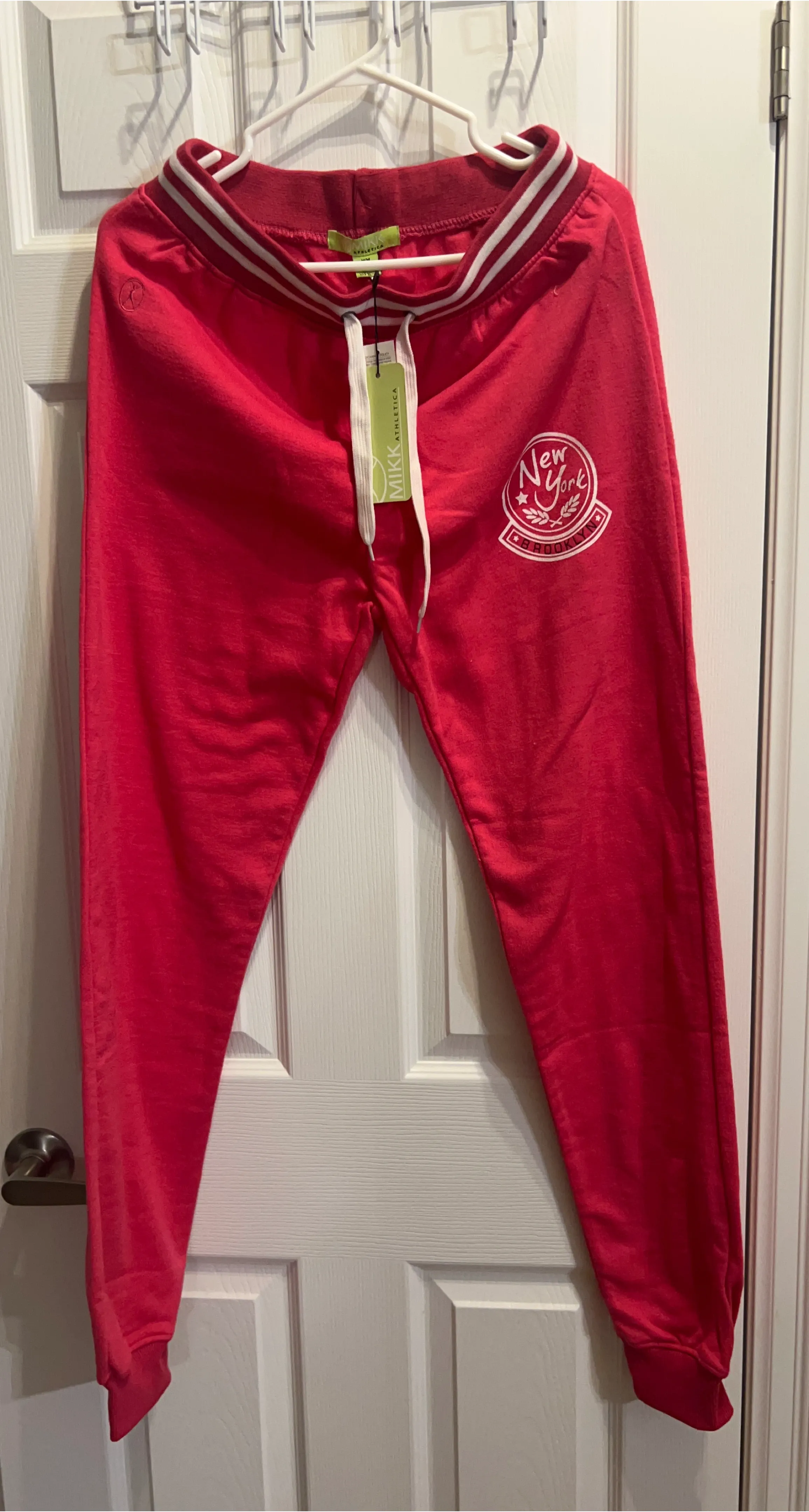 These red sweatpants from MIKK Athletica feature a New York graphic on the left leg. They're made of a soft fabric perfect for casual wear. Ribbed cuffs and an elastic waistband with a drawstring ensure a comfy fit.