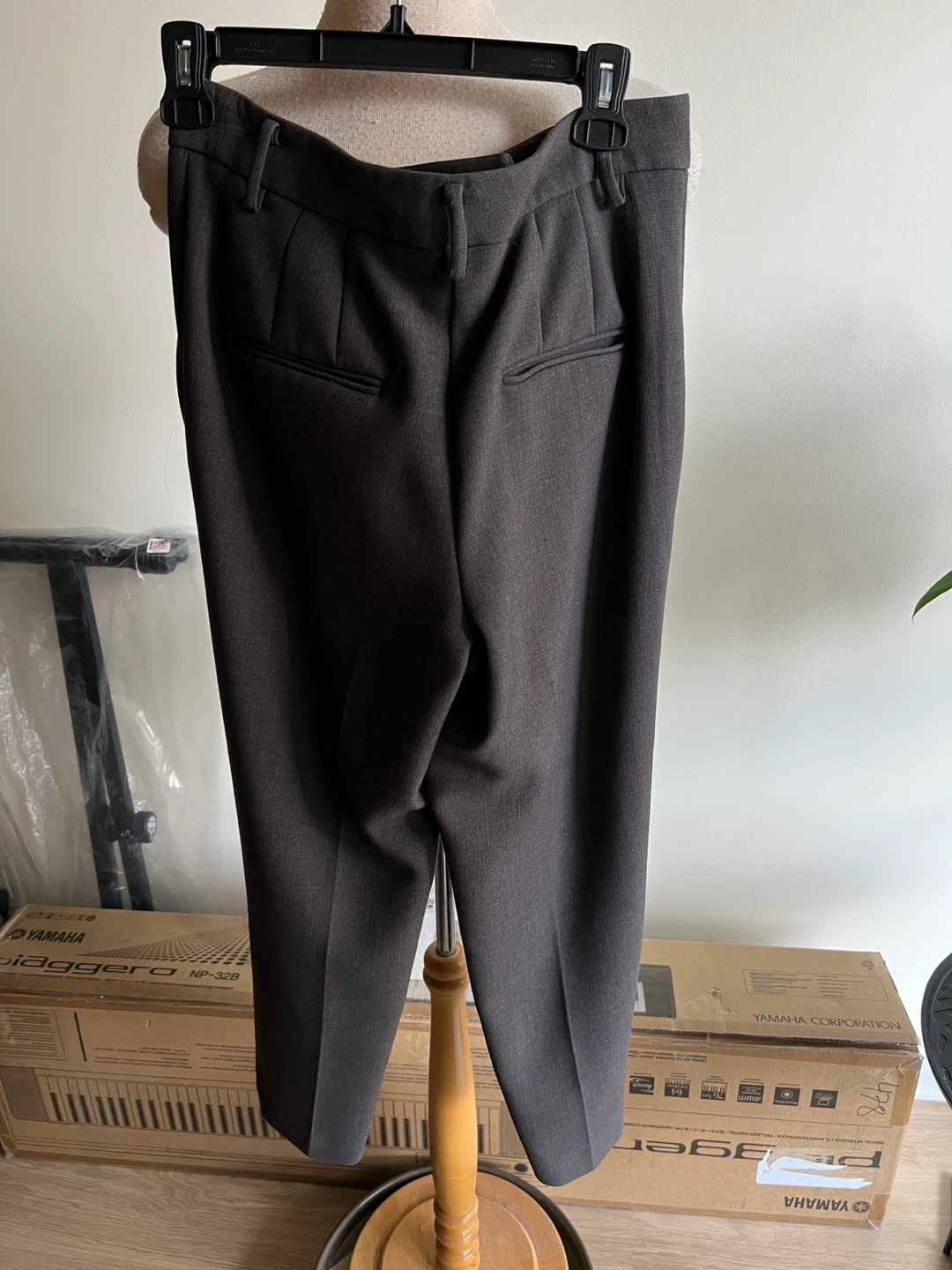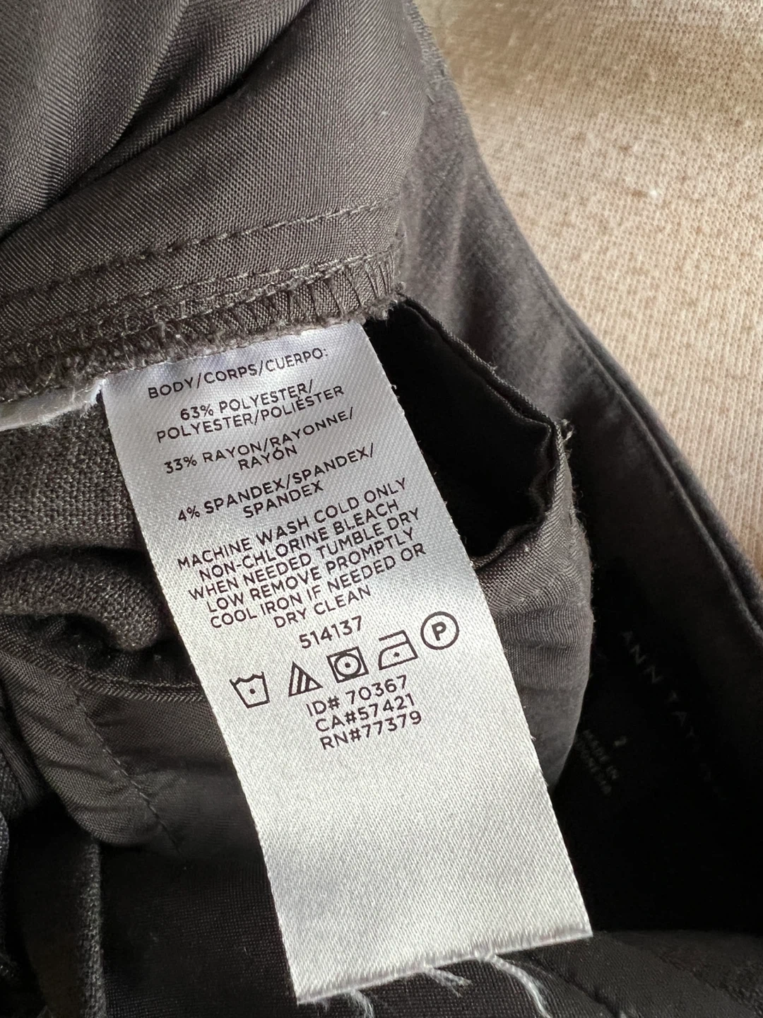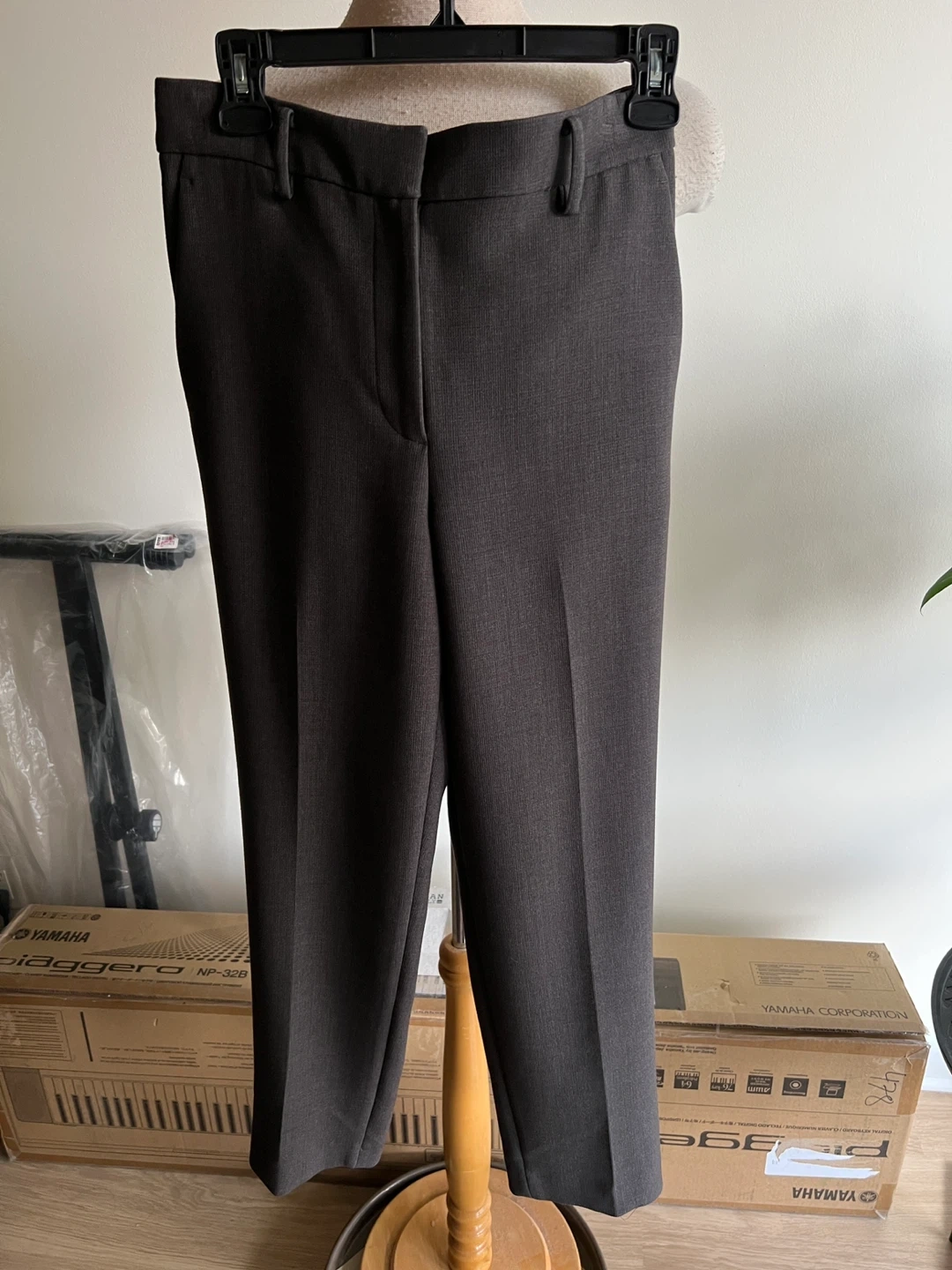 Ann Taylor pants in a dark grey colour. Comes with a matching fabric belt. Tag says size 2 but it is a size 4 fit. Worn a few times. In excellent condition. Tag says dry clean but ok to wash in washing machine in delicate cycle. They’re long pants. I’m 5”7 and I didn’t need altering.