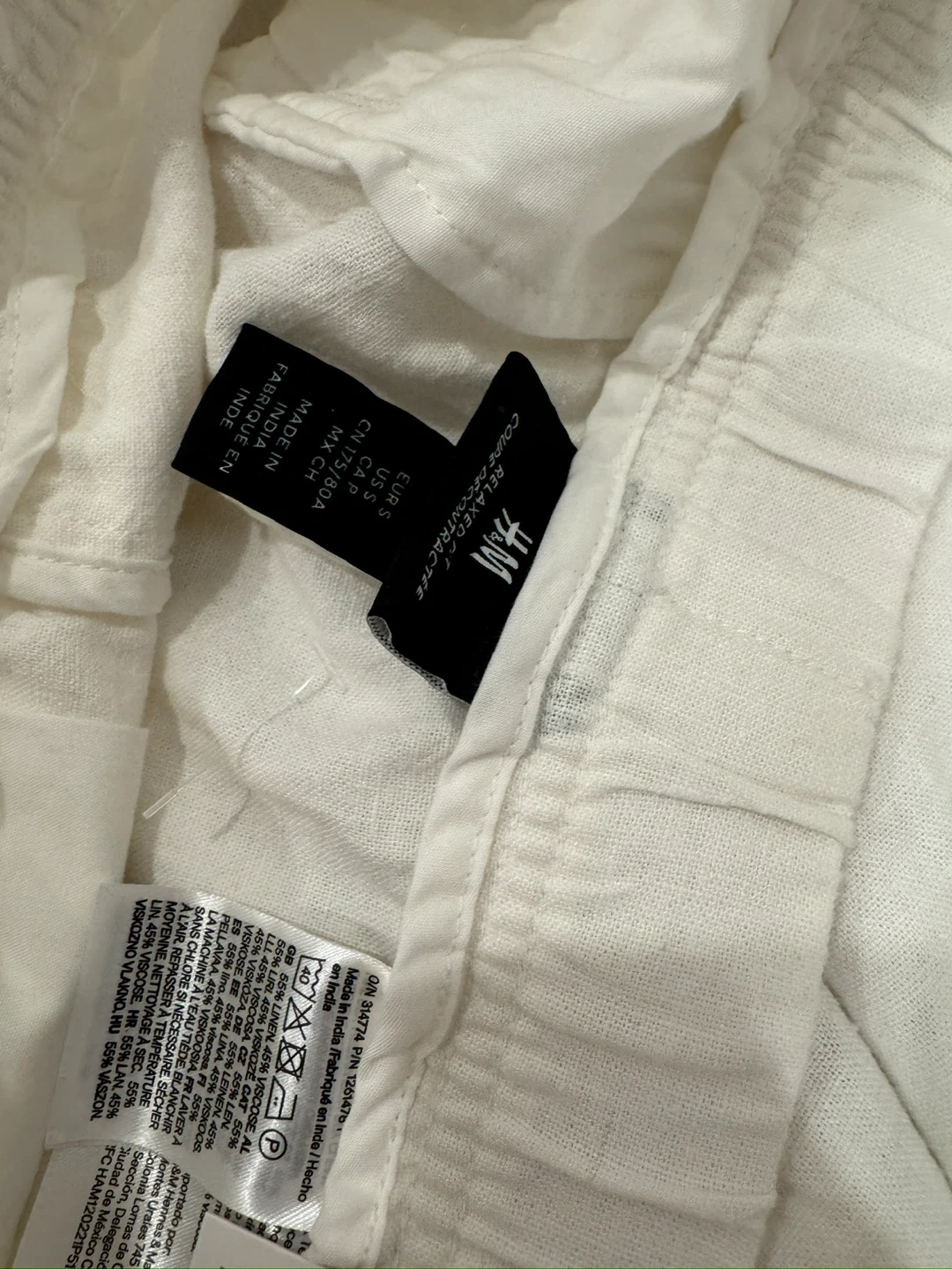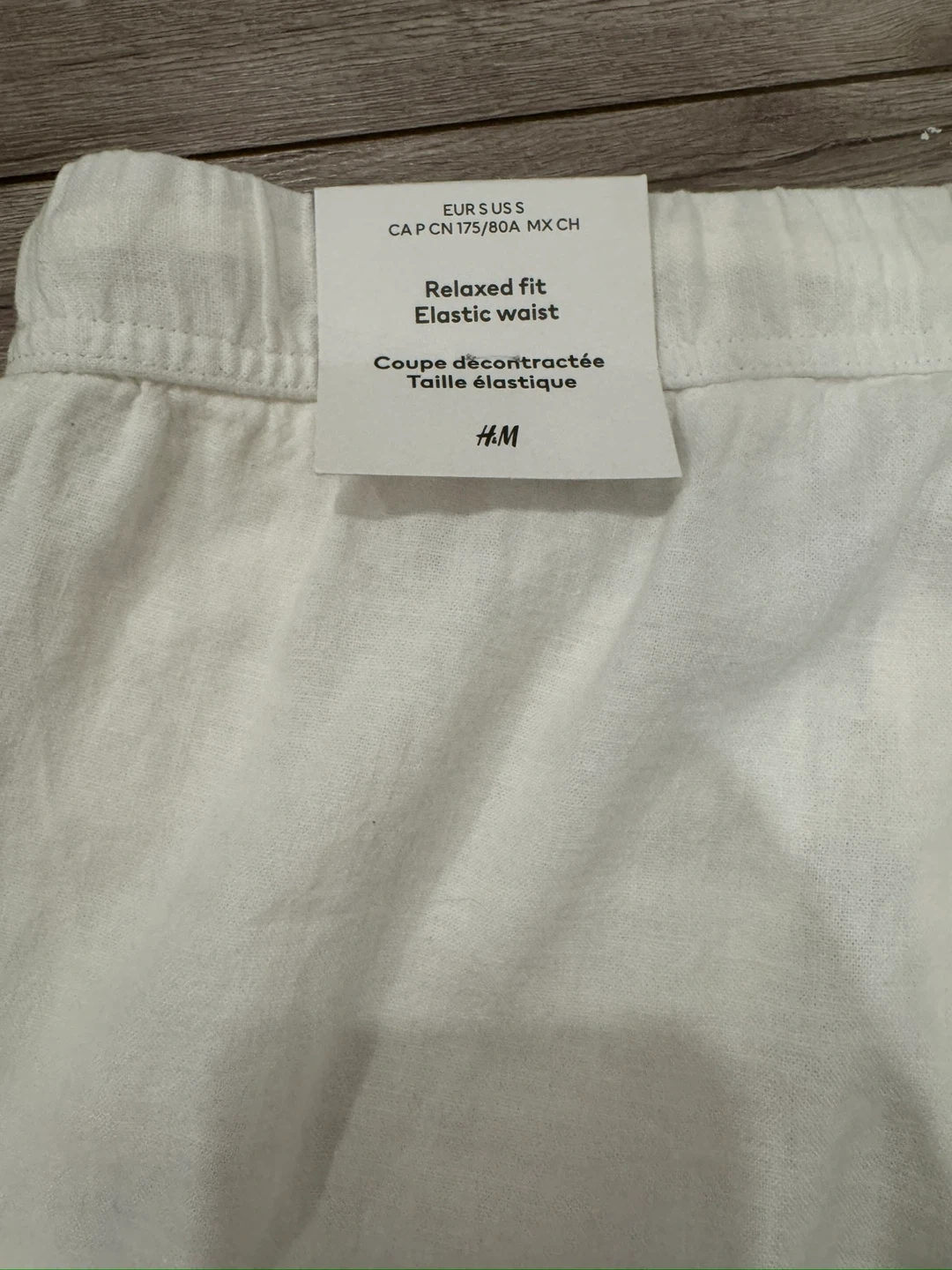 Selling a pair of H&M relaxed fit pants in size small. They're white and have an elastic waist for extra comfort. Perfect for a casual day out!