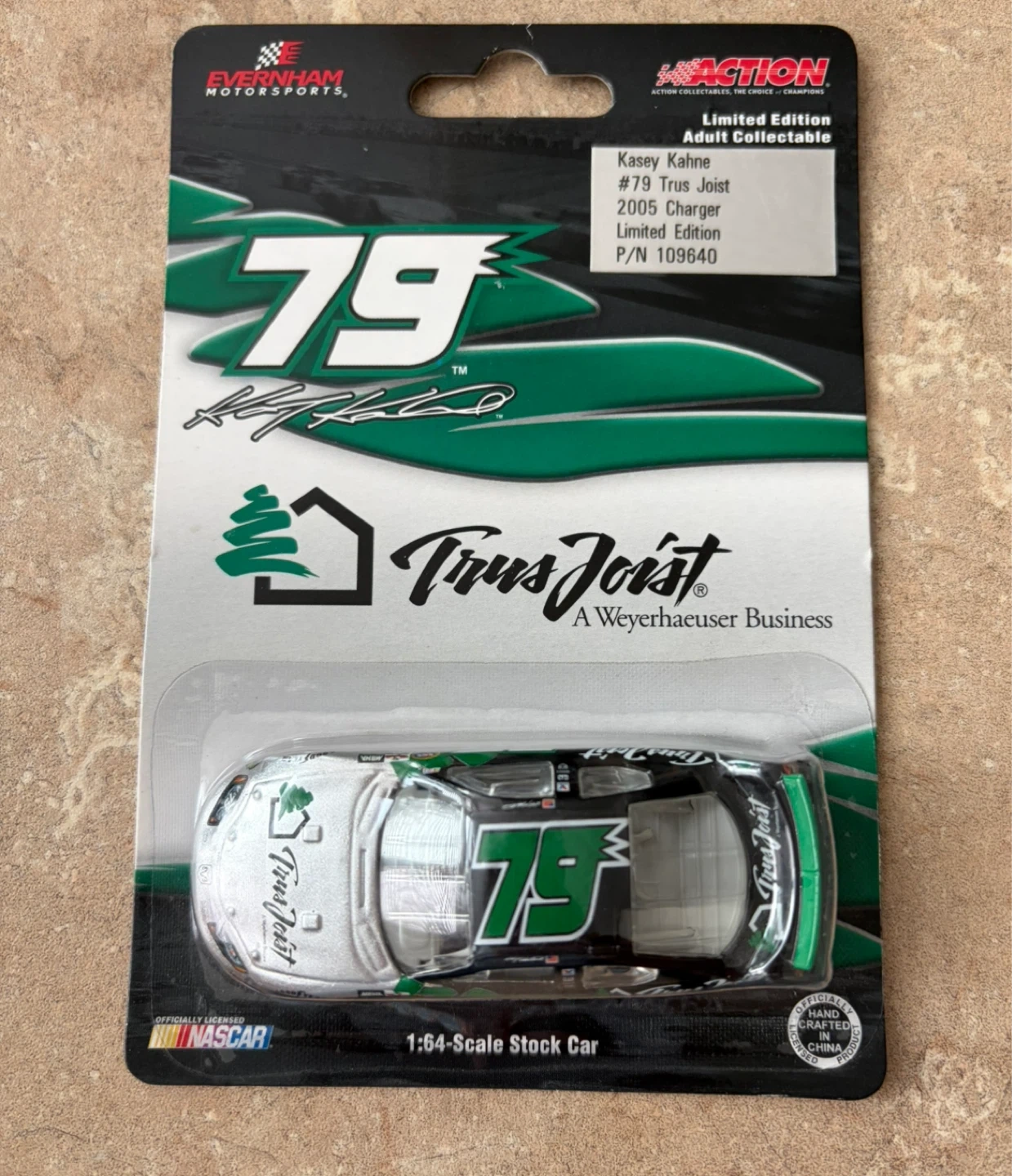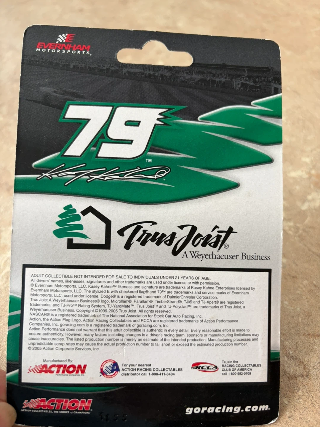 This is a scale stock car collectible featuring Kasey Kahne's #79 Trus Joist Dodge Charger from 2005. It's a limited edition adult collectible officially licensed by NASCAR.