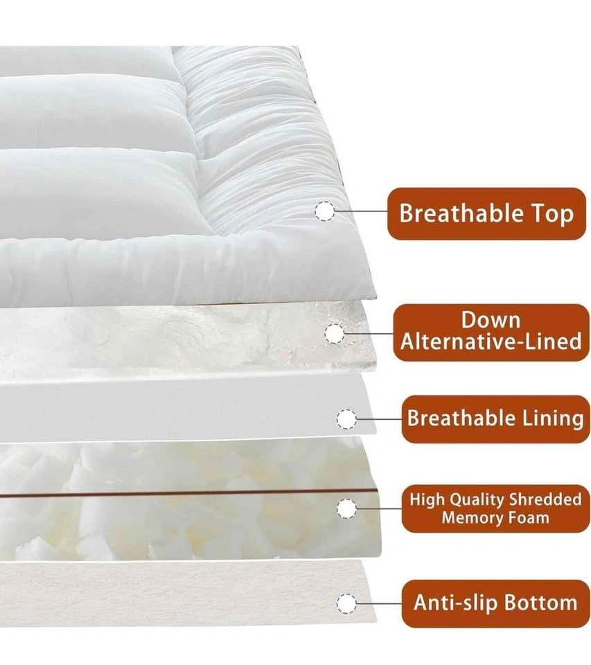 Full / Double Size (54 x 75 in). Thick pillow-top style with shredded memory foam fill. Brown piping detail and elastic corner straps to keep it in place. Open box but never used. In excellent condition. Retails on Amazon for ~$80. My price: $40. Great for adding comfort to a firm mattress, guest rooms, student housing, or basement setups. Cash only. Pick up in Mississauga near Winston Churchill & Britannia.